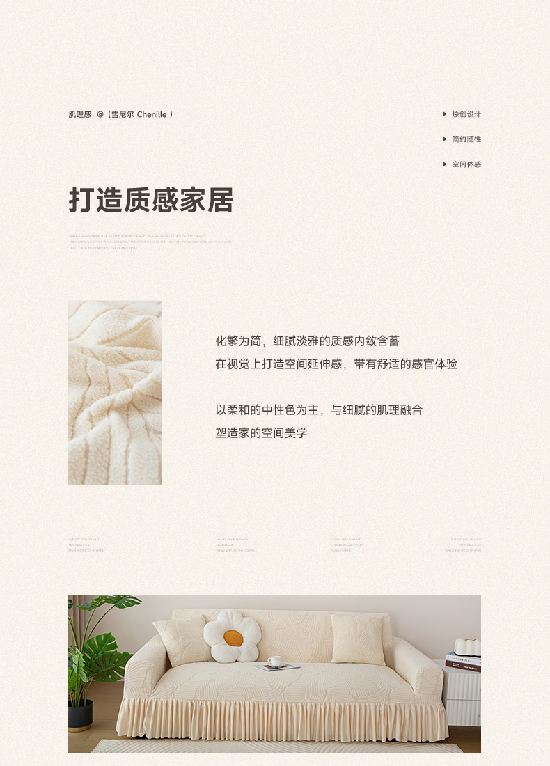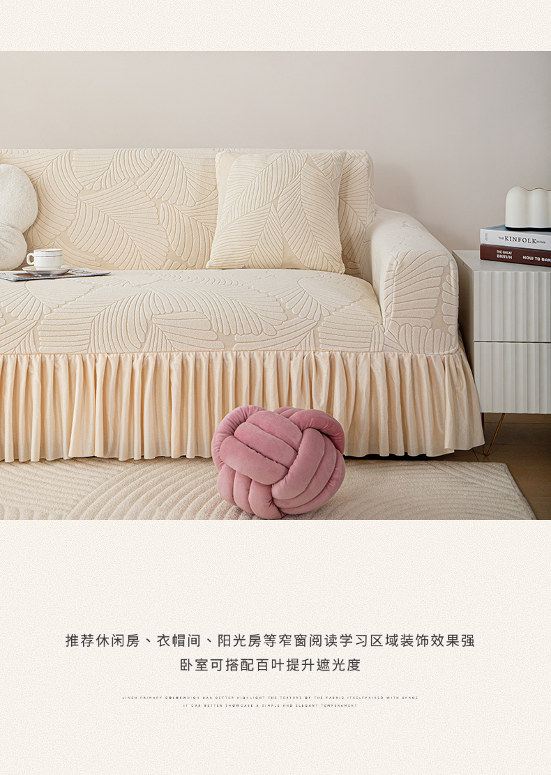 沐沐家纺 2026新款晨露裙边款沙发套 亚麻白
