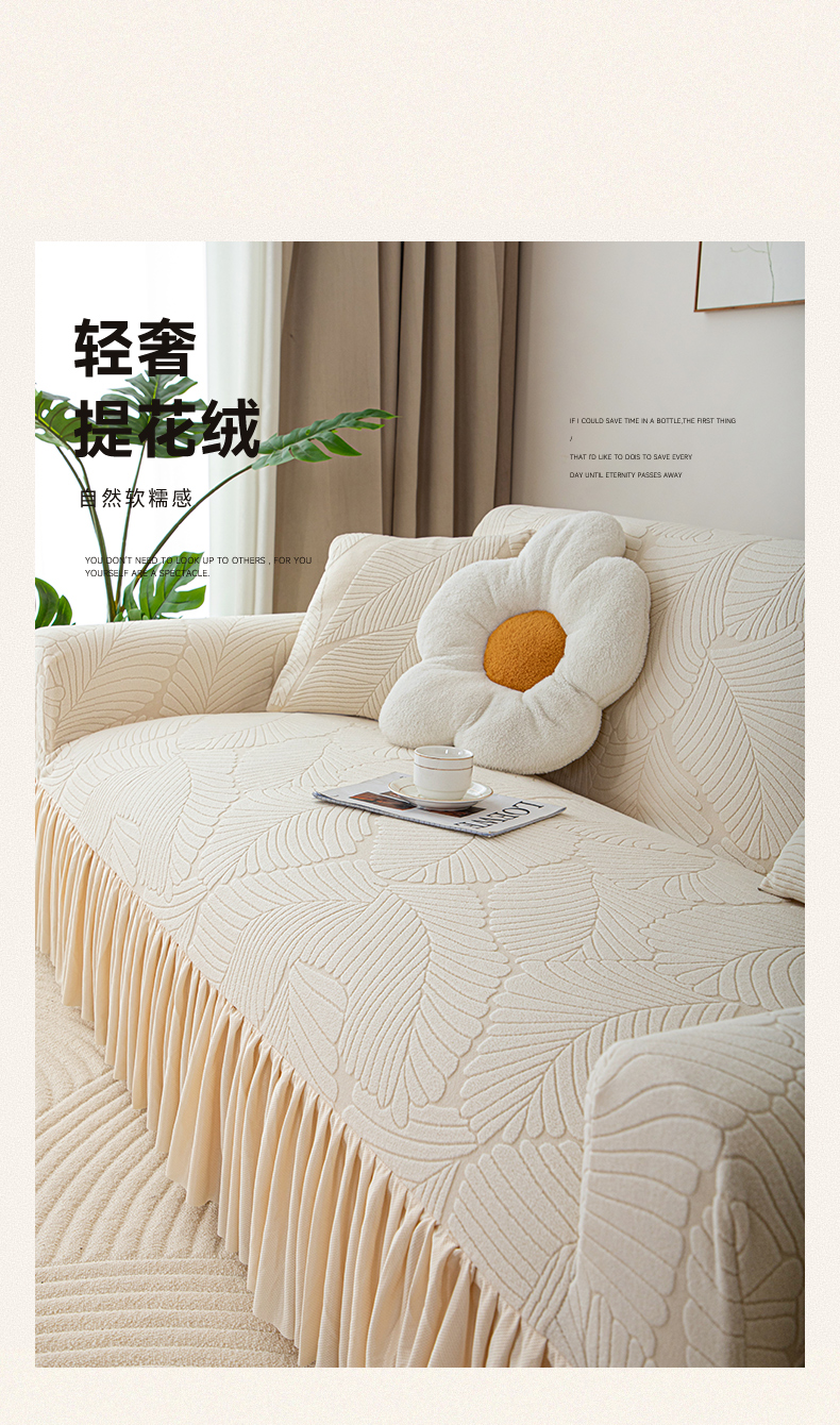 商品名称:沐沐家纺 2026新款晨露裙边款沙发套 亚麻白
