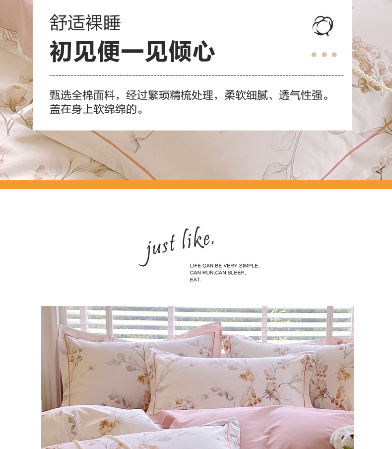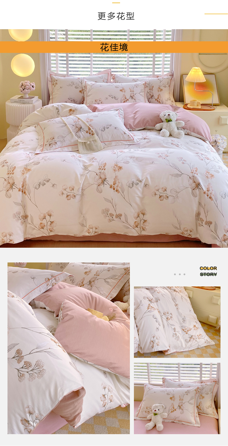 (总)星期三 2025年4月新款铂金全棉纯棉13372四件套 加微信有会员价,橙日幽香,花的旅途,花几度-绿,花佳境-咖,花枝草蔓,柔纱花影,棠影寻-粉,小雨录-紫,星际漫游