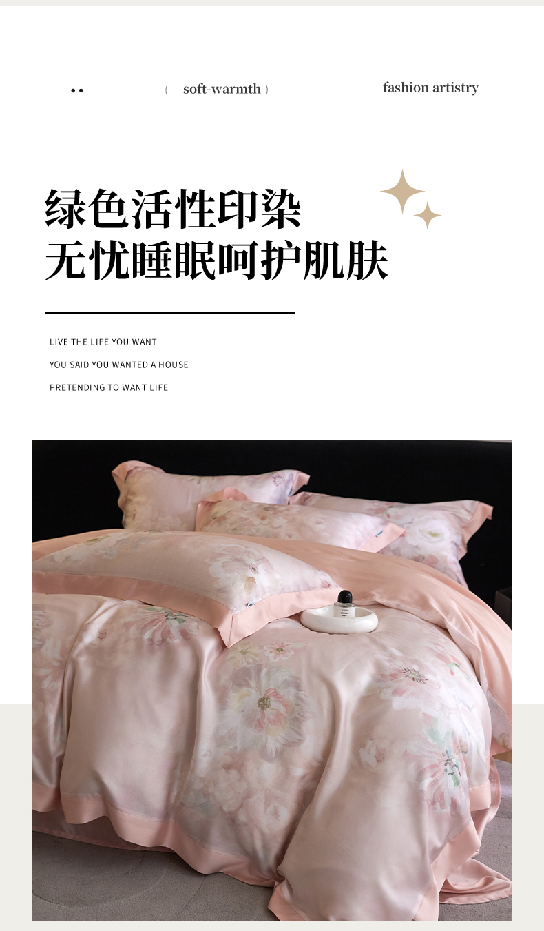 商品名称:禾时 2025新款60S兰精天丝印花四件套 初夏(粉)
