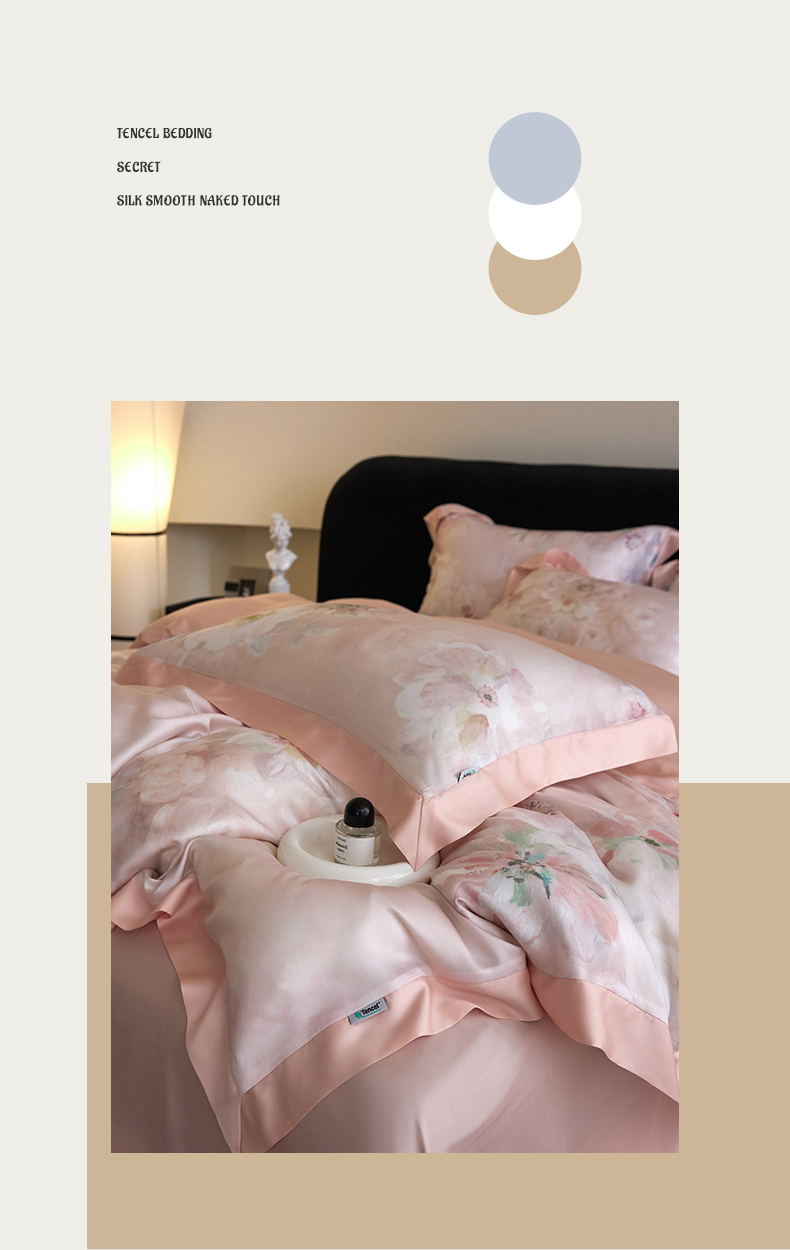 禾时 2025新款60S兰精天丝印花四件套 初夏(粉)