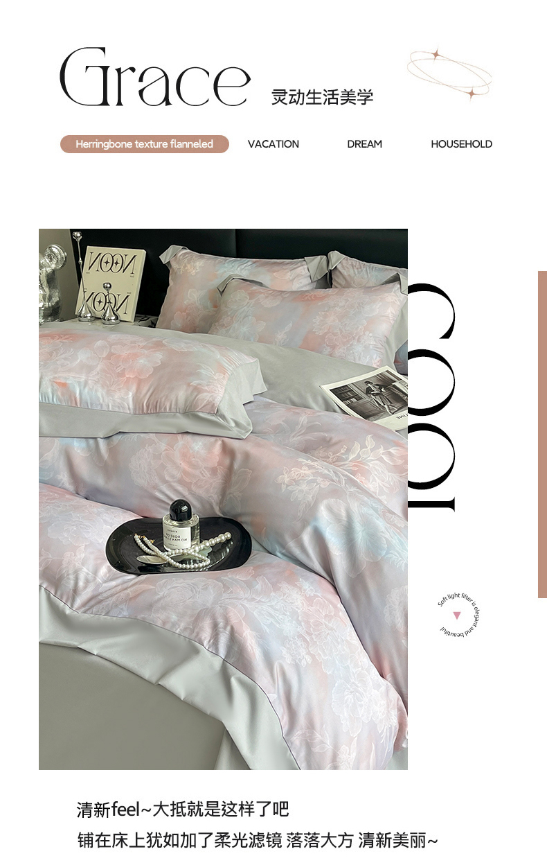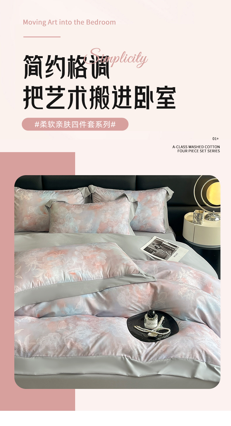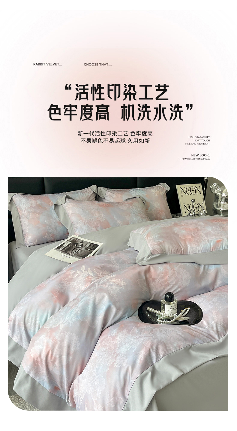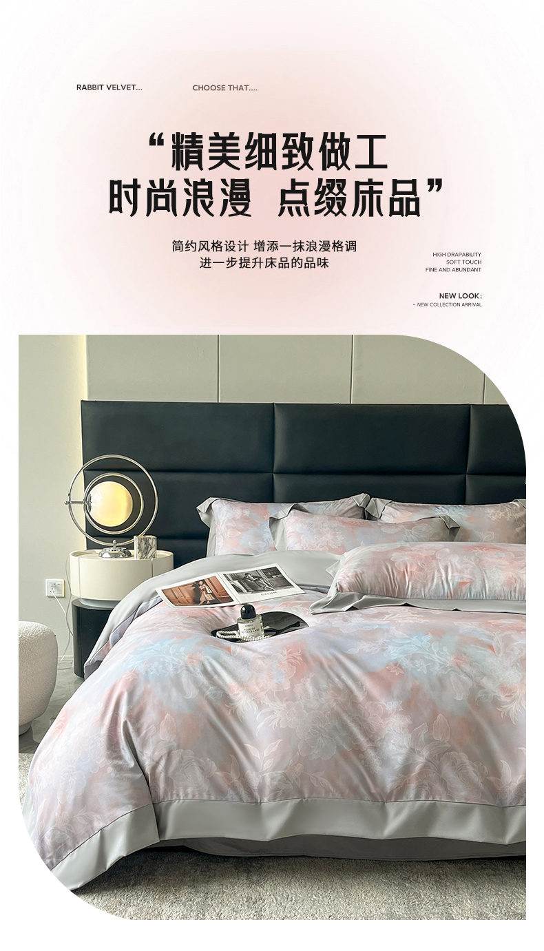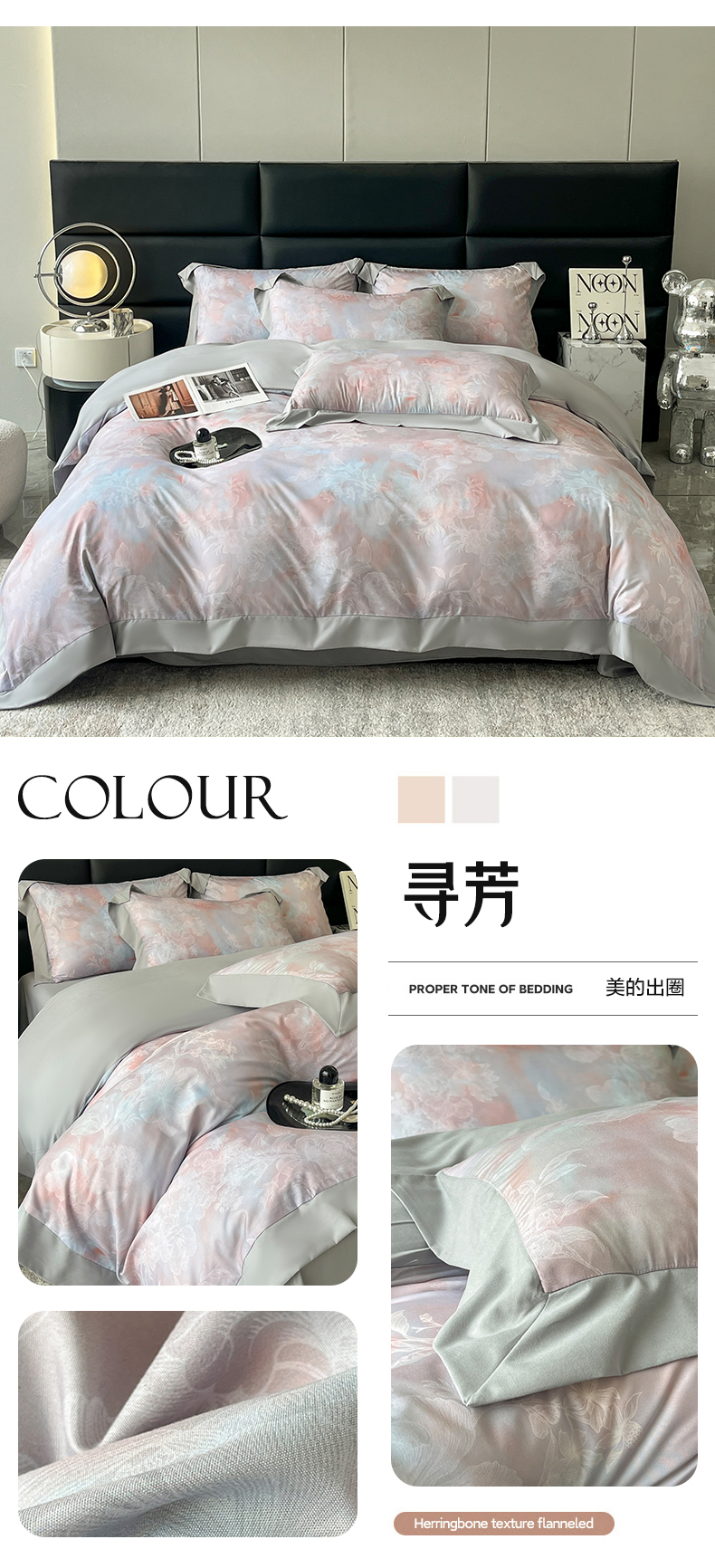 KA家纺 2025新款A类轻奢大拼角亲肤棉数码印花云朵棉四件套 寻芳