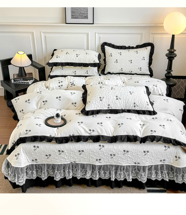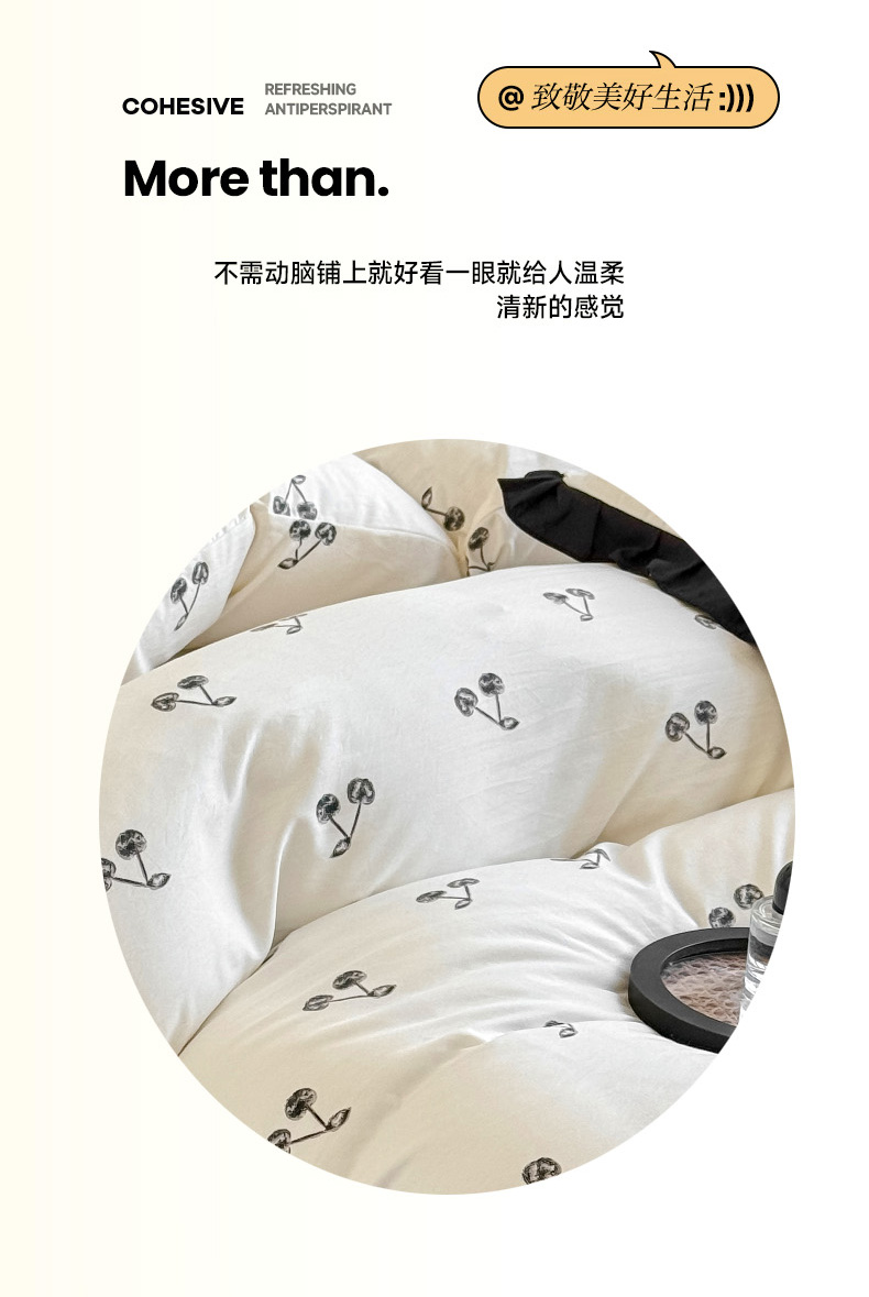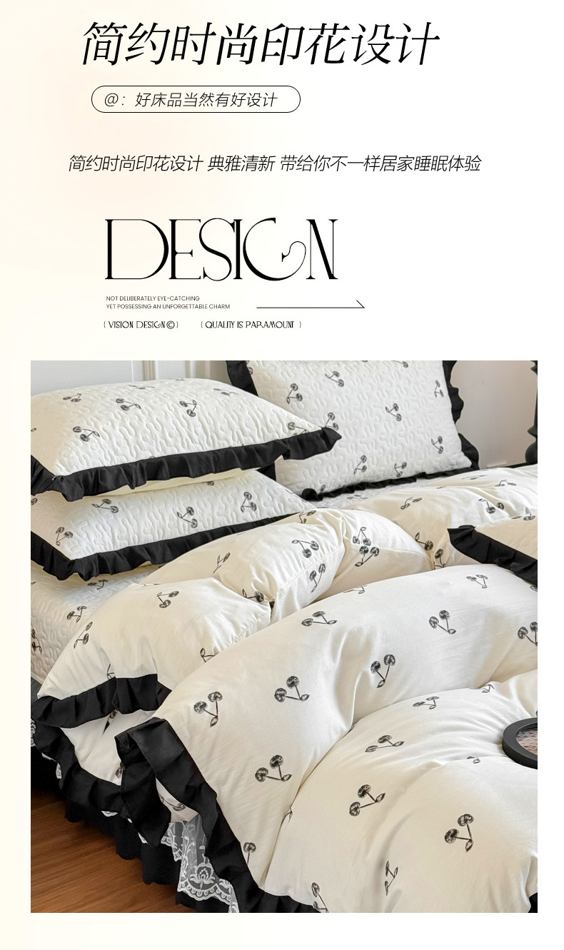 商品名称:绣女坊 2025新款时尚印花水洗棉被套款床盖四件套-赫本风 赫本风-樱桃
