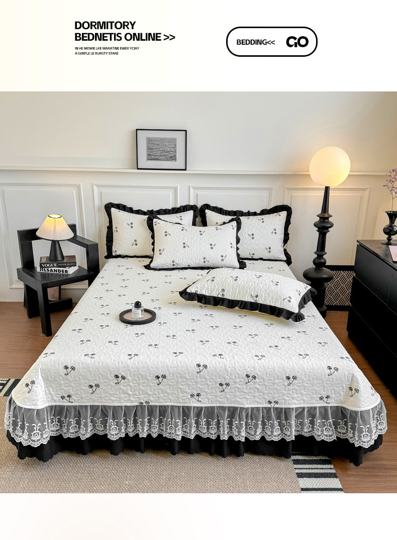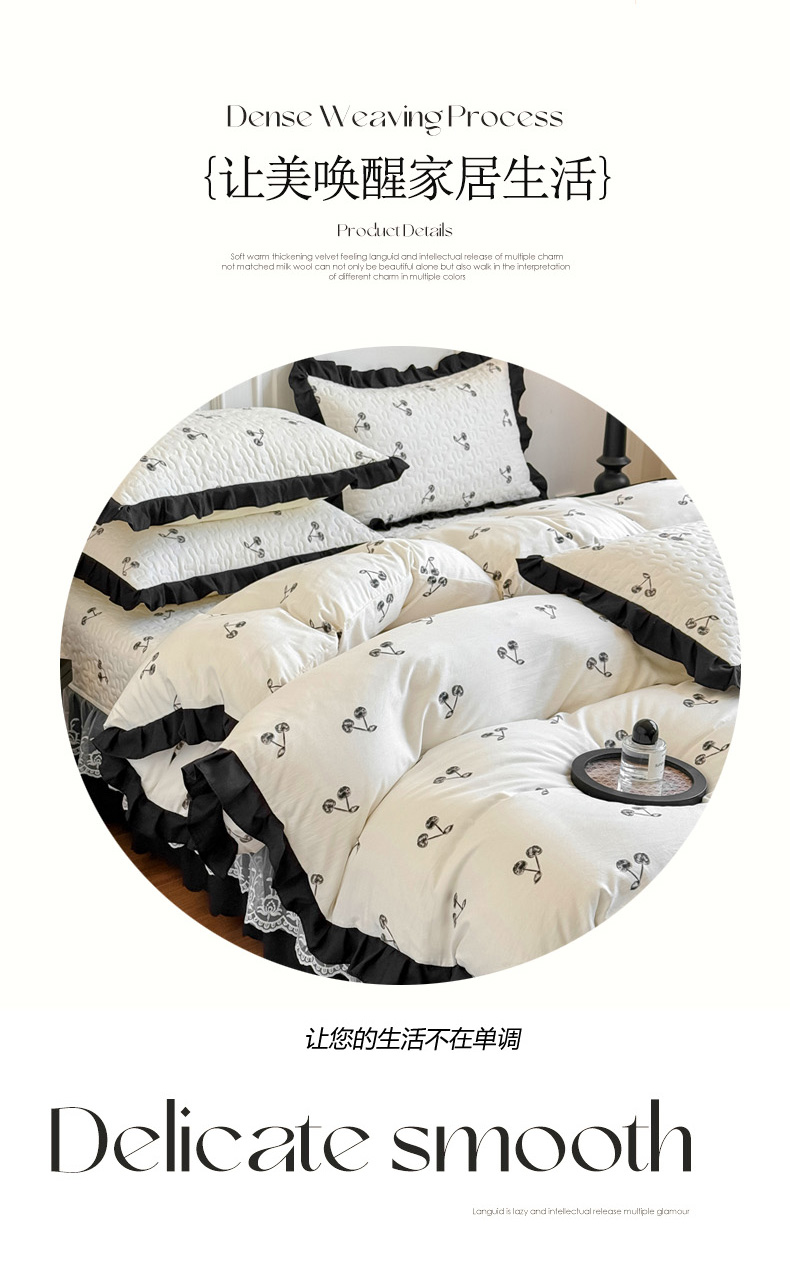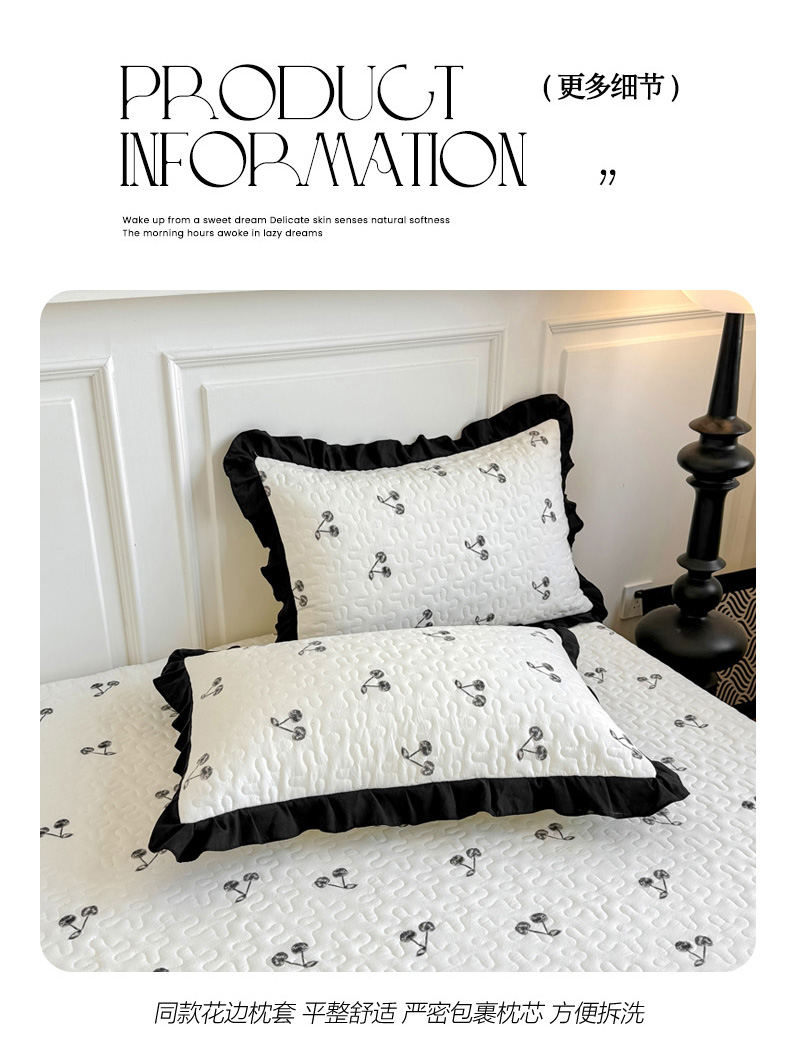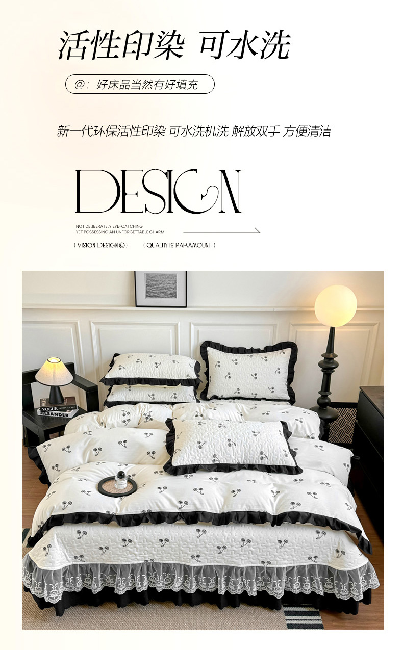 商品名称:绣女坊 2025新款时尚印花水洗棉被套款床盖四件套-赫本风 赫本风-樱桃