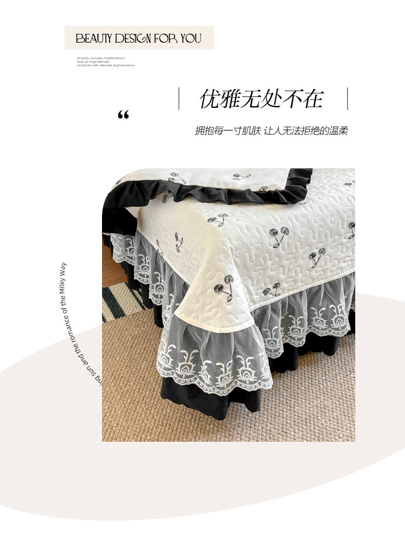 2023牛奶绒保暖四件套韩版蕾丝花边,紫色,松花绿,灰色,豆沙,宾利蓝