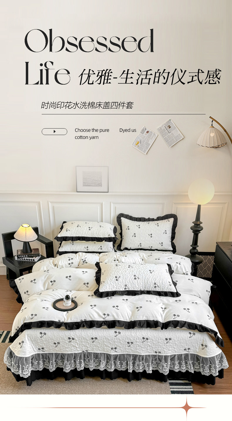 绣女坊 2025新款时尚印花水洗棉被套款床盖四件套-赫本风 赫本风-樱桃