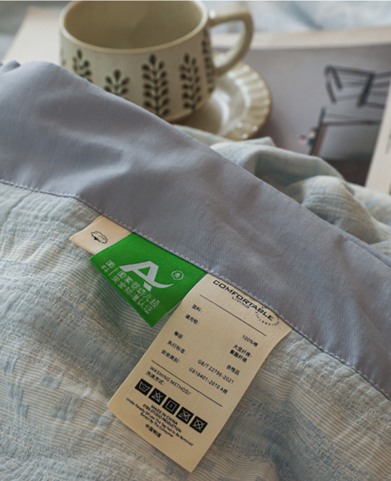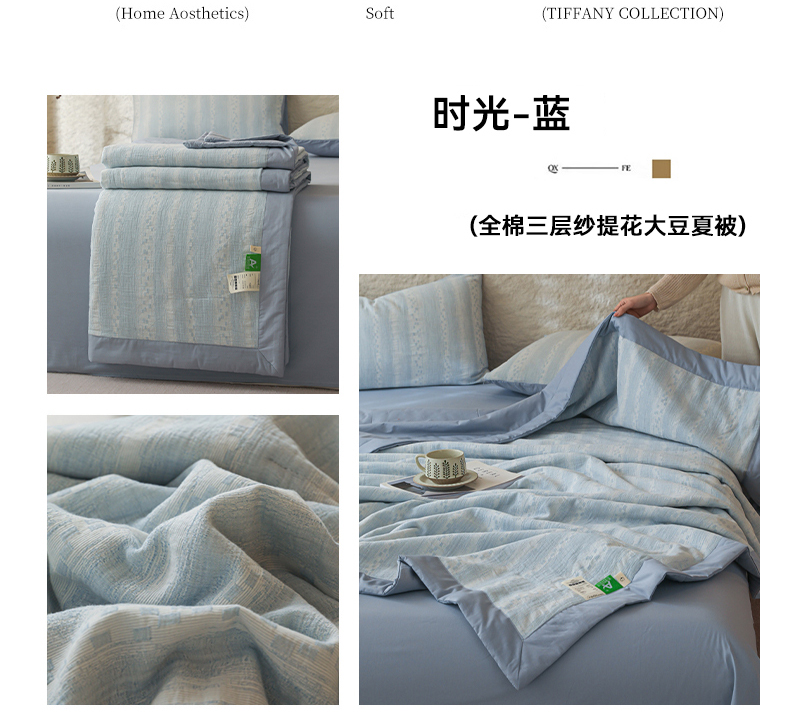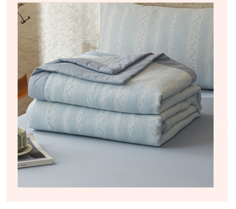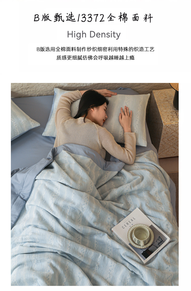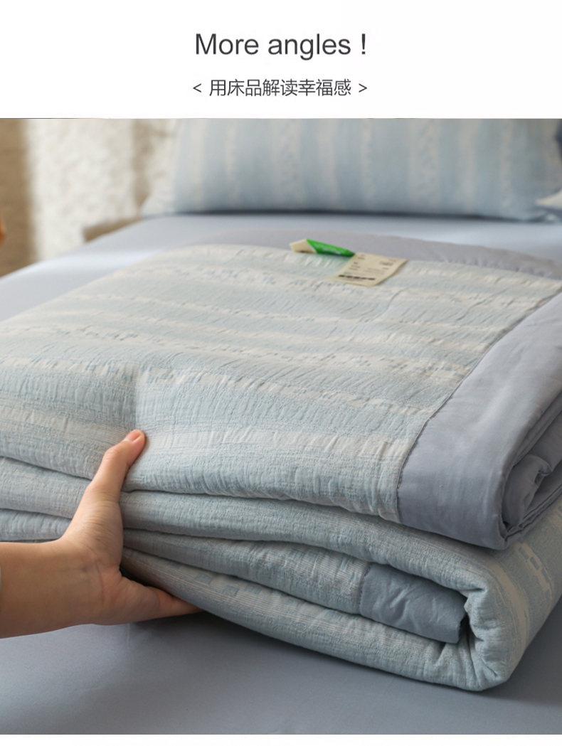 当前位置: 91家纺网 > 商品网购 > 床品套件 > 四件套 > 提花四件套 > 眠博士 2025新款A类全棉包边三层纱提花夏被四件套 包边三层纱夏被-时光-蓝