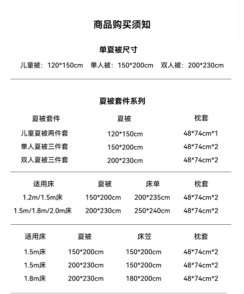 2.0m夏被+1.8m床笠四件套 | ¥170.00 |