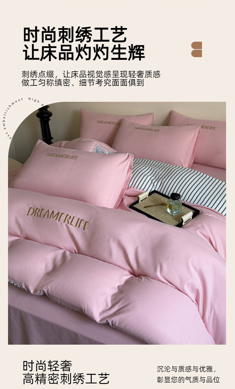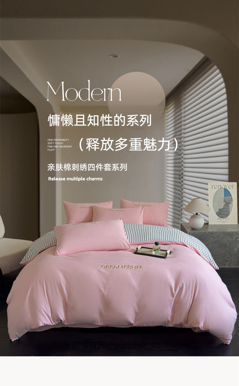 (总)千希家纺 2025新款轻奢简约亲肤棉绣花刺绣四件套-赛尔系列,赛尔-星耀黑,赛尔-蜜桃粉,赛尔-莫尼灰,赛尔-雾霾蓝