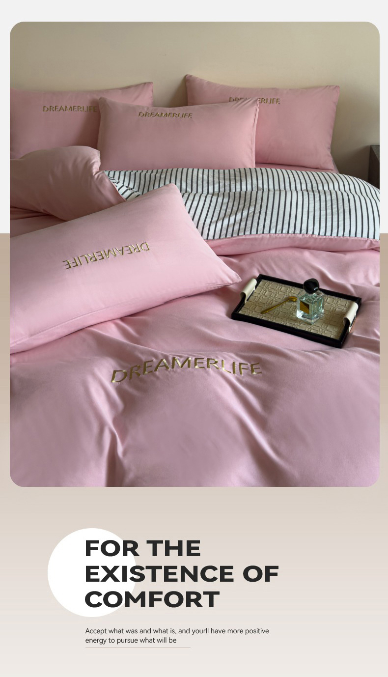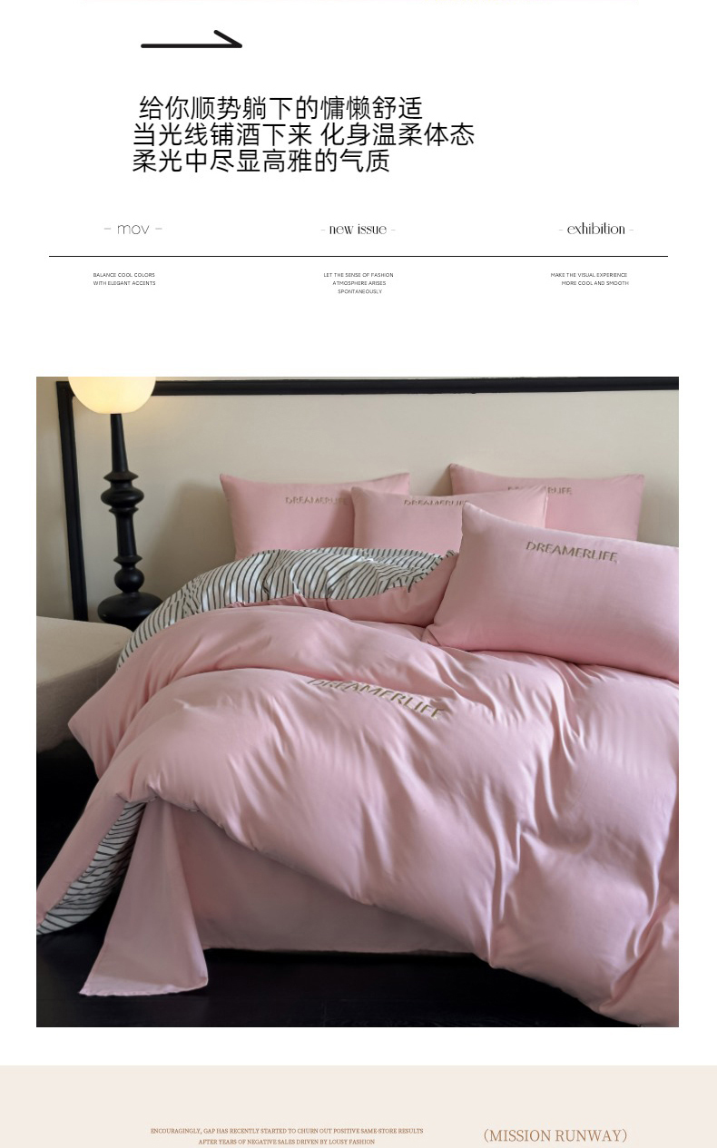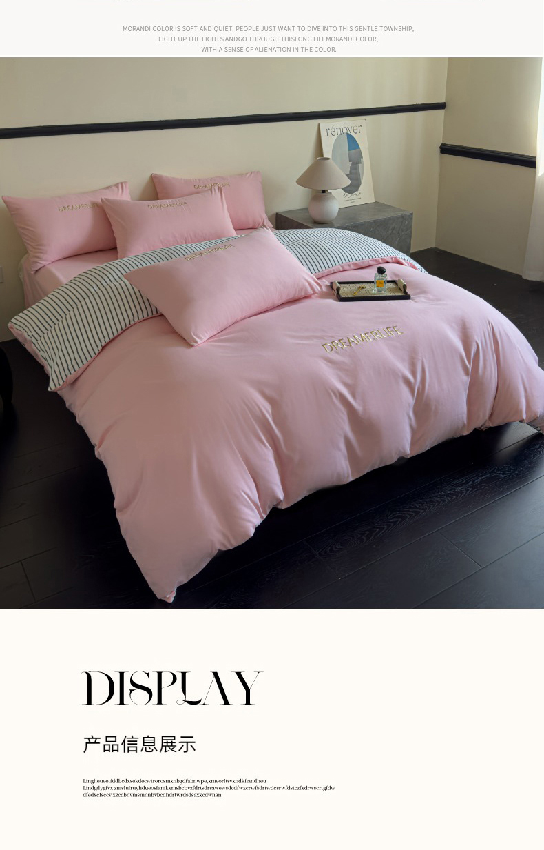 商品名称:2025新款亲肤棉四件套-赛尔系列 赛尔-蜜桃粉