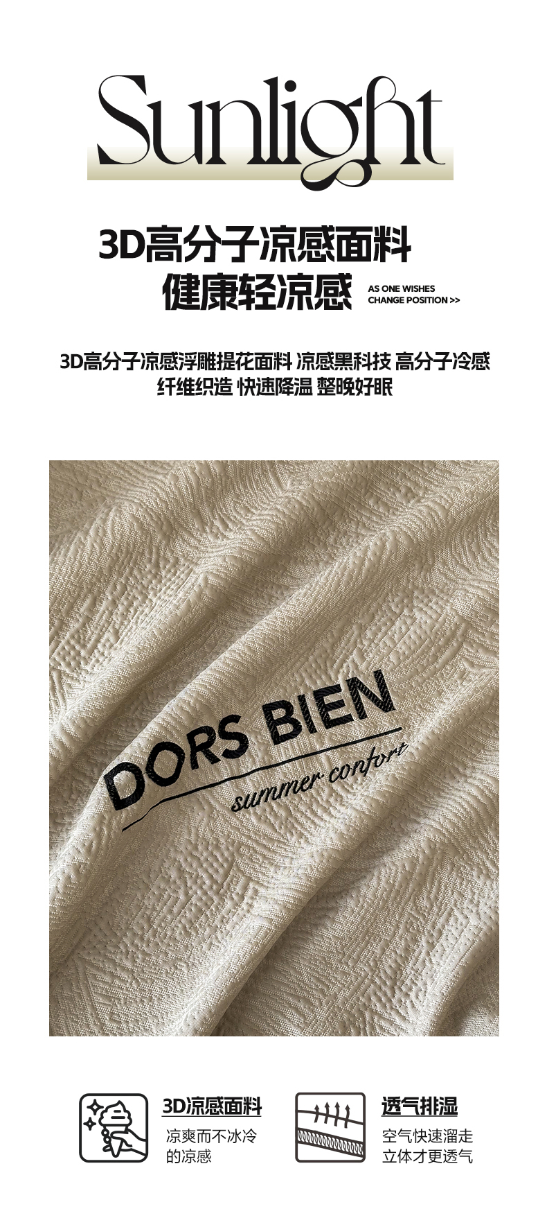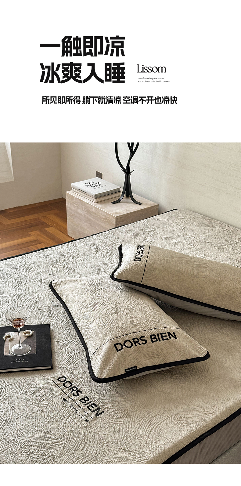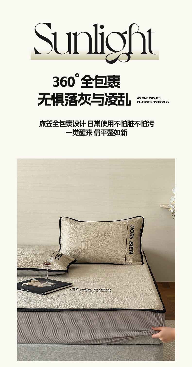 (总)圆岛家纺 2025新款3D高分子凉感浮雕提花软凉席床笠款三件套