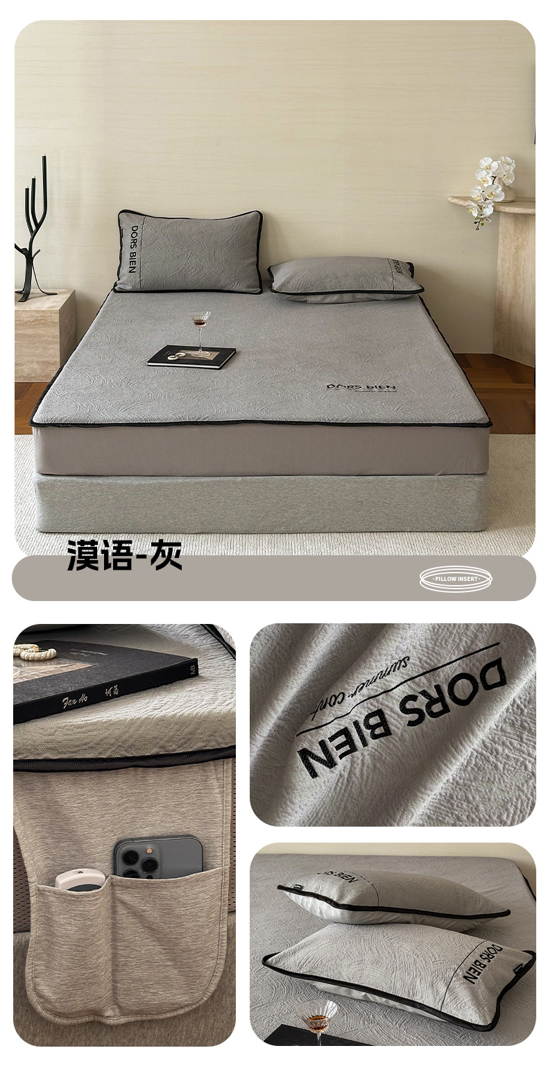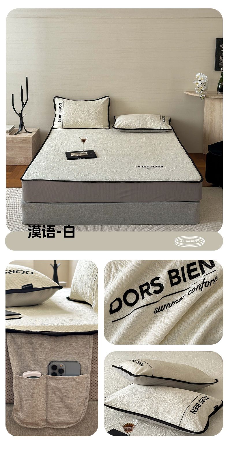 商品名称:(总)圆岛家纺 2025新款3D高分子凉感浮雕提花软凉席床笠款三件套