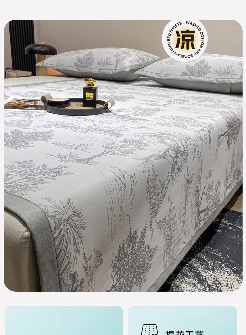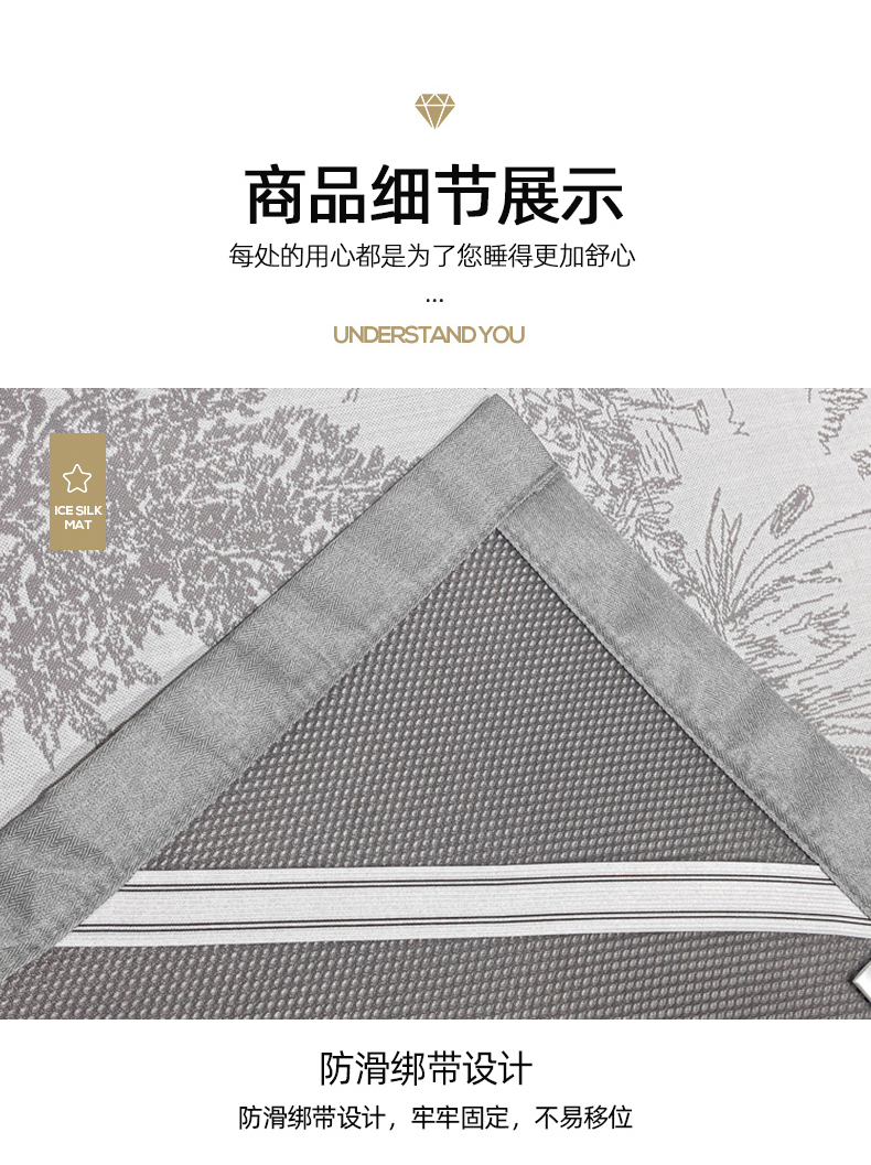 当前位置: 91家纺网 > 商品网购 > 床上用品 > 凉席 > 冰丝席 > 蝶帕家纺 2025新品A类PE高分子乙纶复合三明治提花冰丝席 林间秘境-灰 床笠