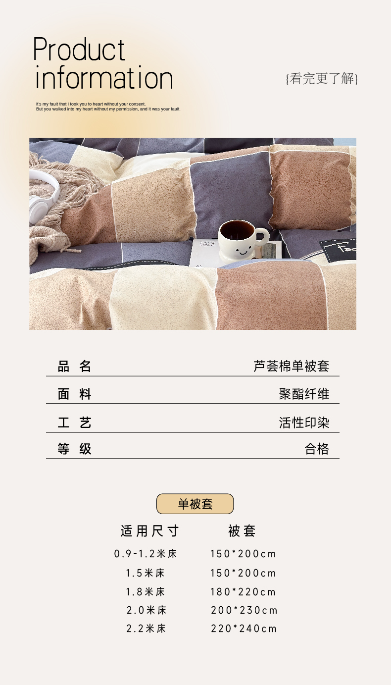 商品名称:可可家纺 2025新款印花卡通芦荟棉被套亲肤被罩单件小清新 绅士格调