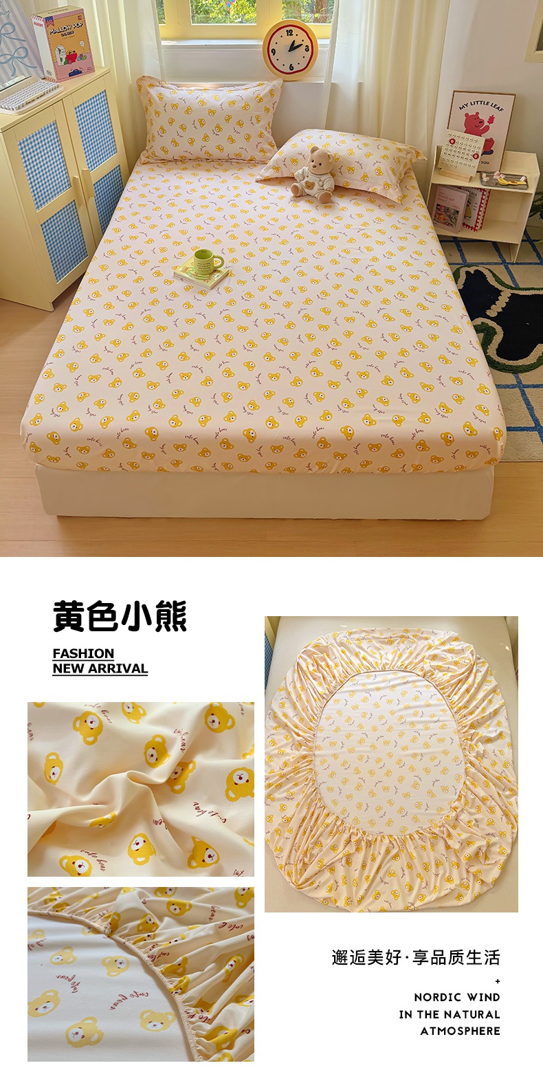 (总)十一家居 2025新款ins韩系卡通印花亲肤水洗棉床笠,黑色可颂,彩蝶之舞,波点小猫,欢乐伙伴,焦糖蘑菇,面包甜甜圈,奶芙小熊,微笑狗狗,组合