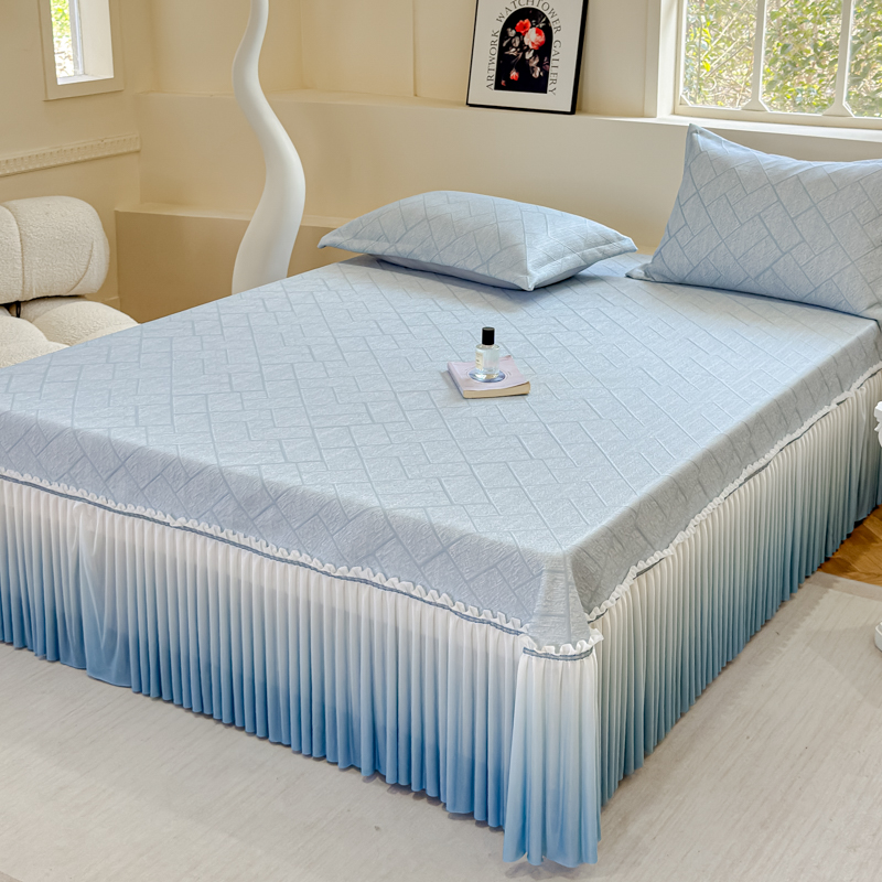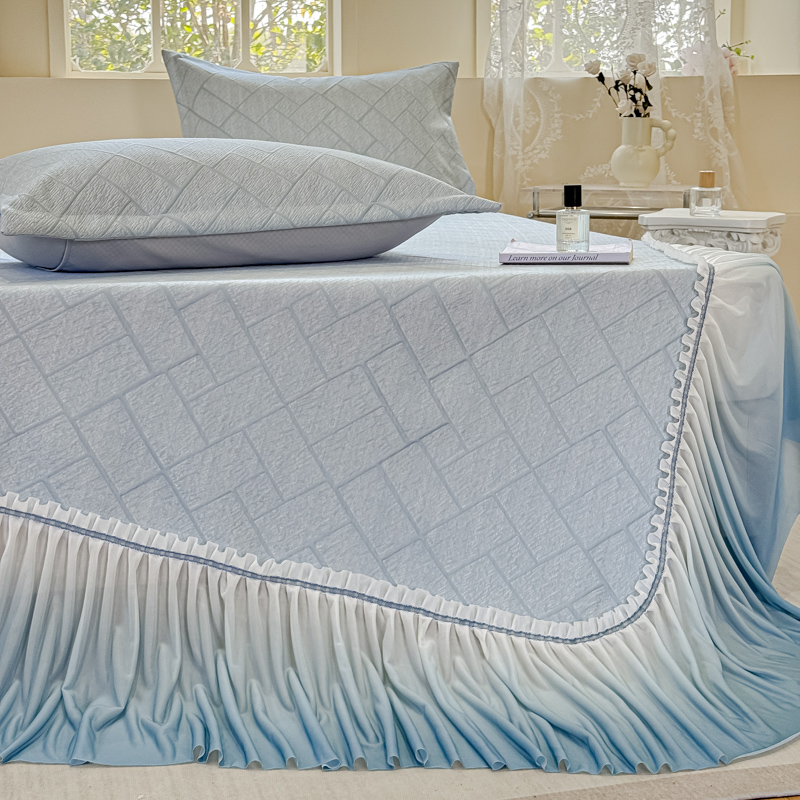 棉生活家纺 2025新款高端款冰离子超软按摩凉席 方格-兰-床裙款