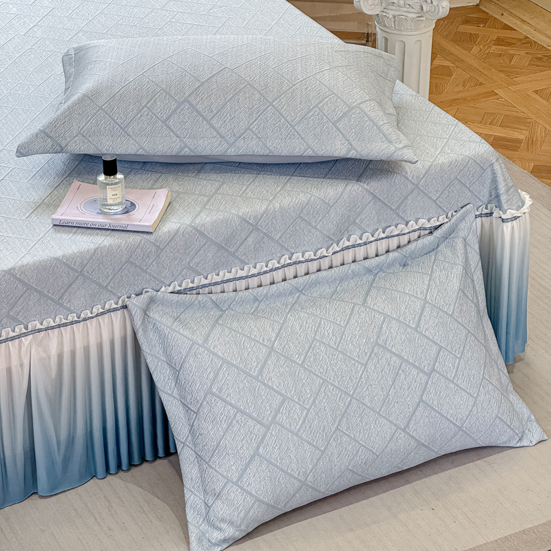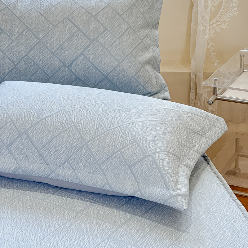 商品名称:棉生活家纺 2025新款高端款冰离子超软按摩凉席 方格-兰-床裙款