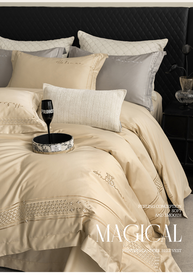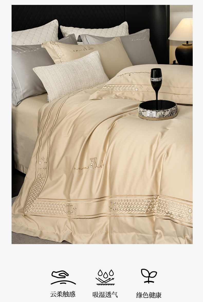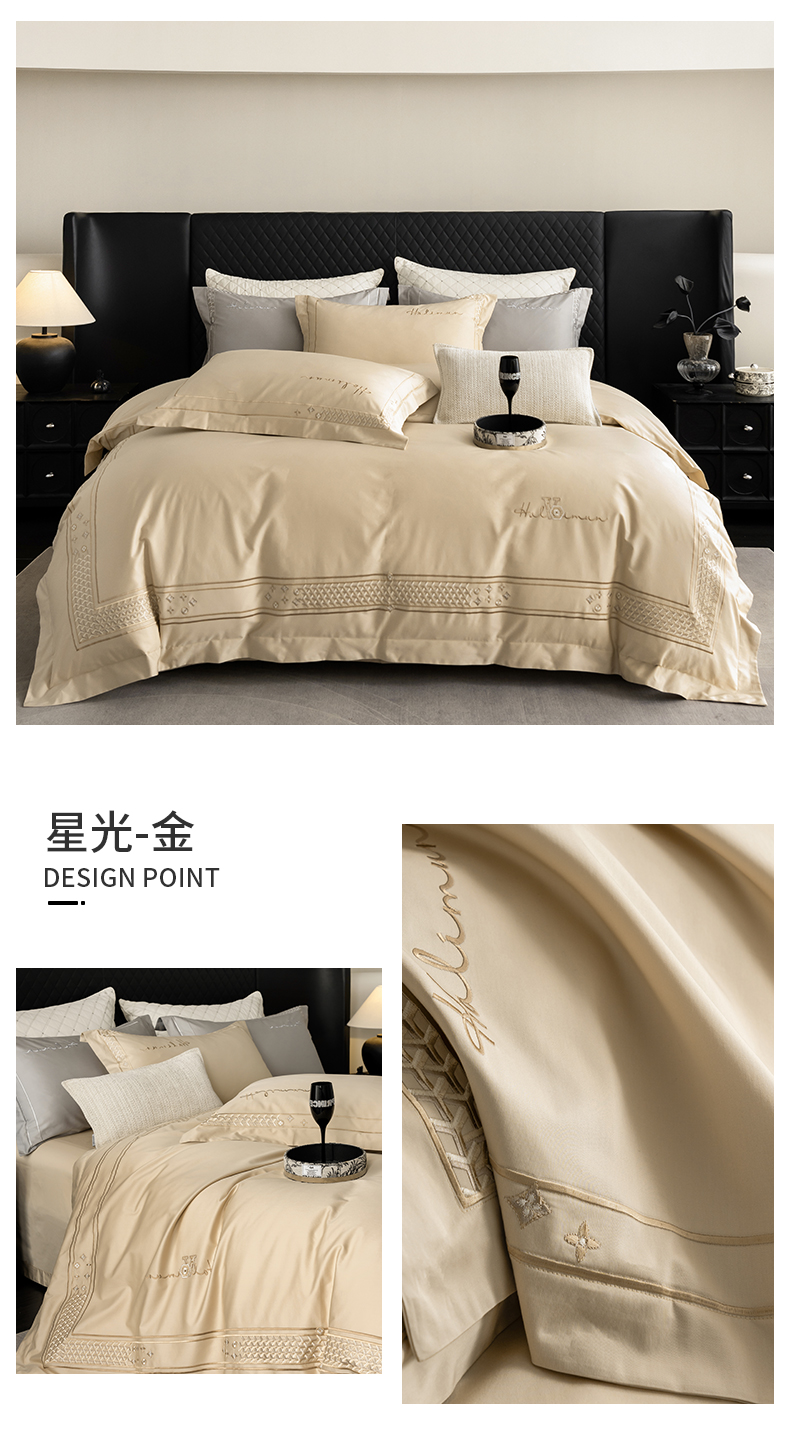 商品名称:保罗圣迪奥 2025新款全棉长绒棉刺绣四件套-星光 星光-金