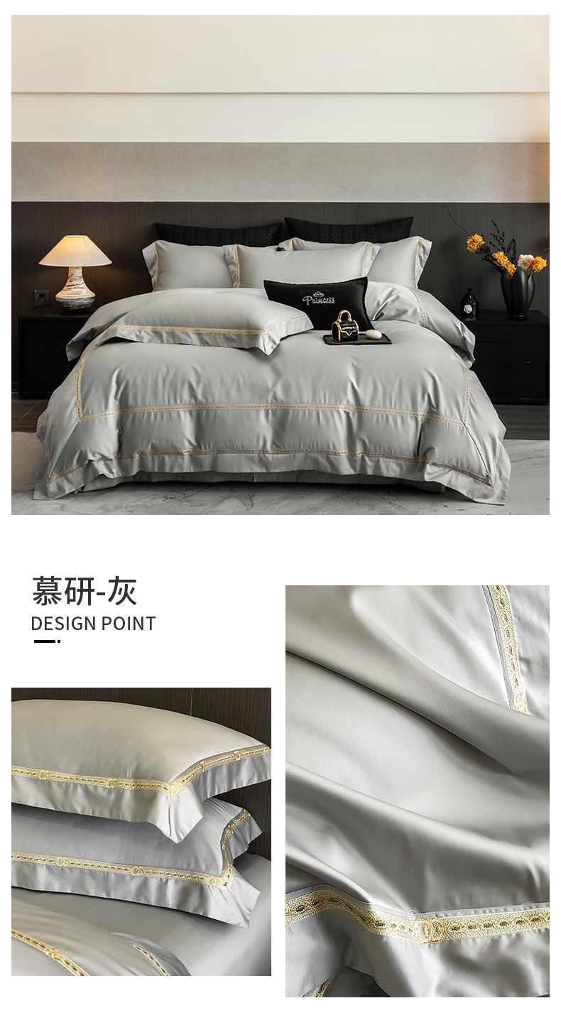 2025新款全棉长绒棉刺绣四件套-慕研 慕研-灰