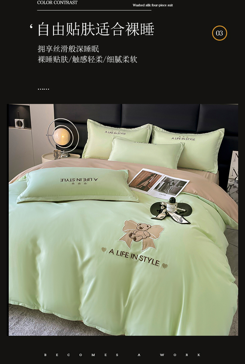 (总)汣沐生活 2025新款水洗真丝夏被夏被四件套,半熟蜜桃+豆蔻粉,冰川灰+豆蔻粉,豆蔻粉+冰川灰,风铃兰+石墨灰,海盐蓝+半熟蜜桃,姜黄+石墨灰,青草绿+肉桂茶,石墨灰+冰川灰,水雾紫+黛紫,元气白桃+半熟蜜桃,元气白桃+海盐蓝,元气白桃+姜黄,元气白桃+石墨灰