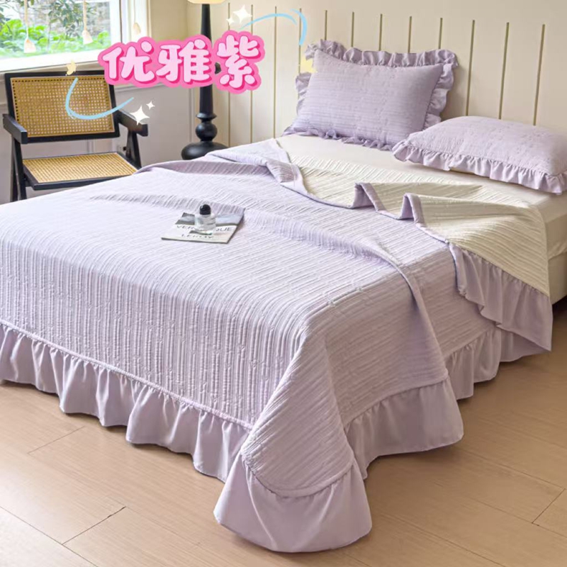 (总)2025新款珍珠棉床盖四件套,蓝色,灰色,粉色,紫色,绿色