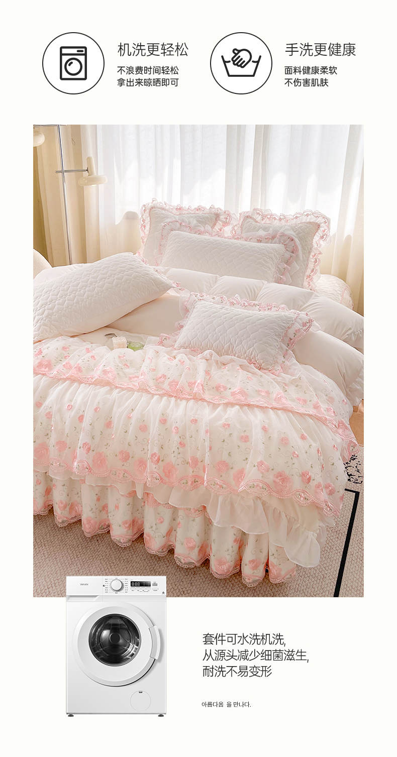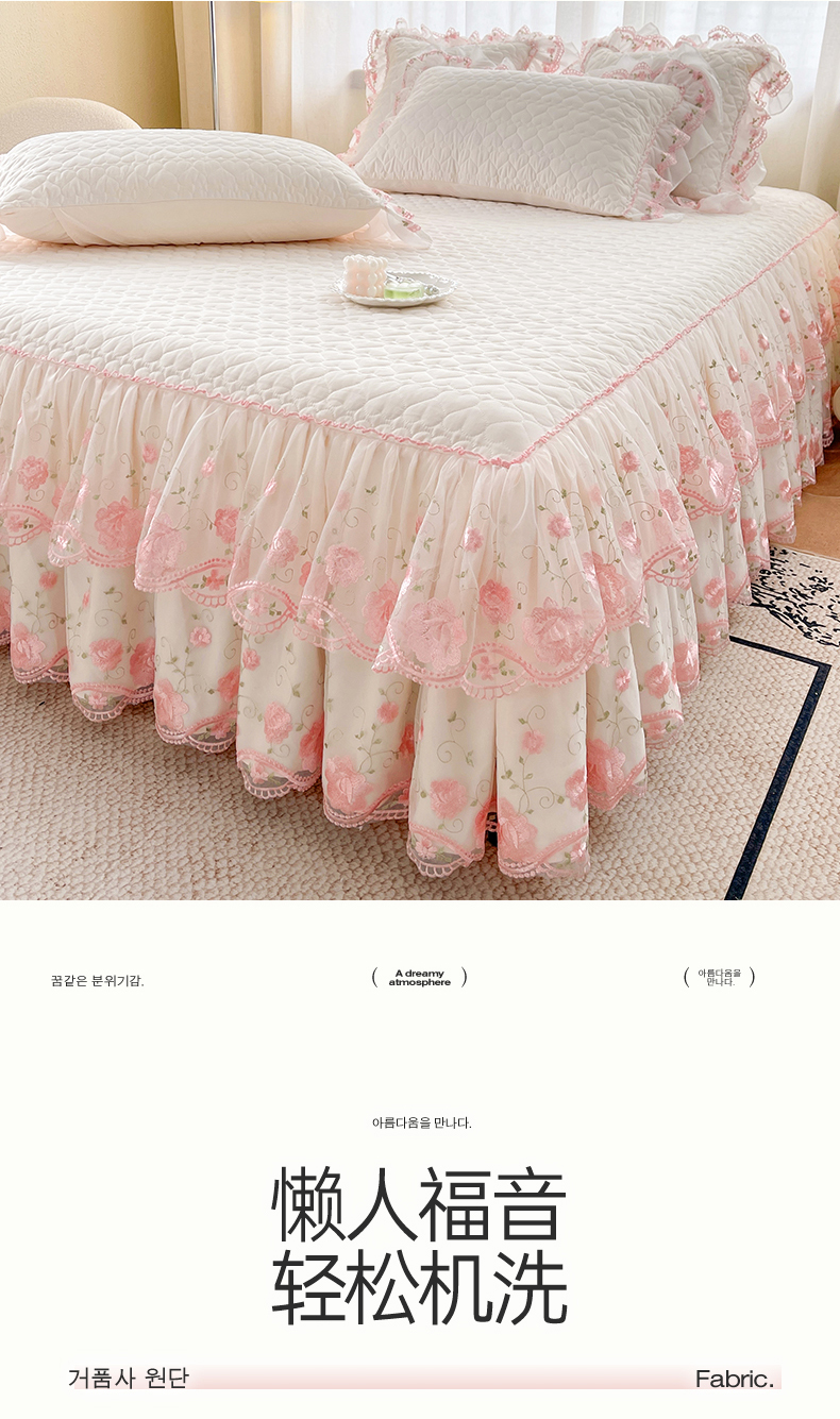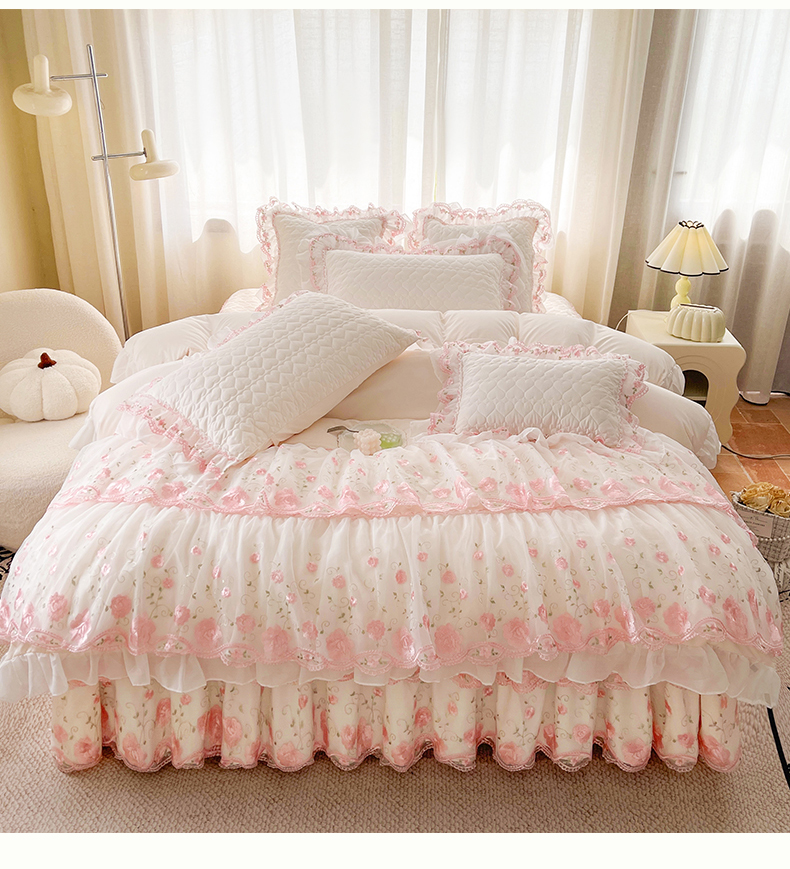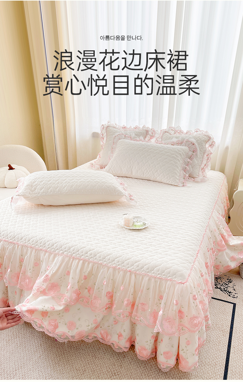 当前位置: 91家纺网 > 商品网购 > 床品套件 > 四件套 > 化纤普通四件套 > 罗艺轩 2025新款A类珍珠棉花边床裙四件套-梦幻花园 梦幻花园-荷花白