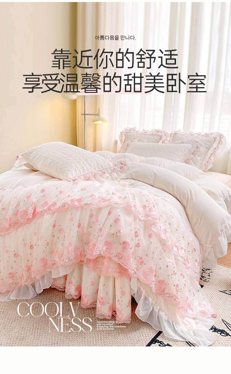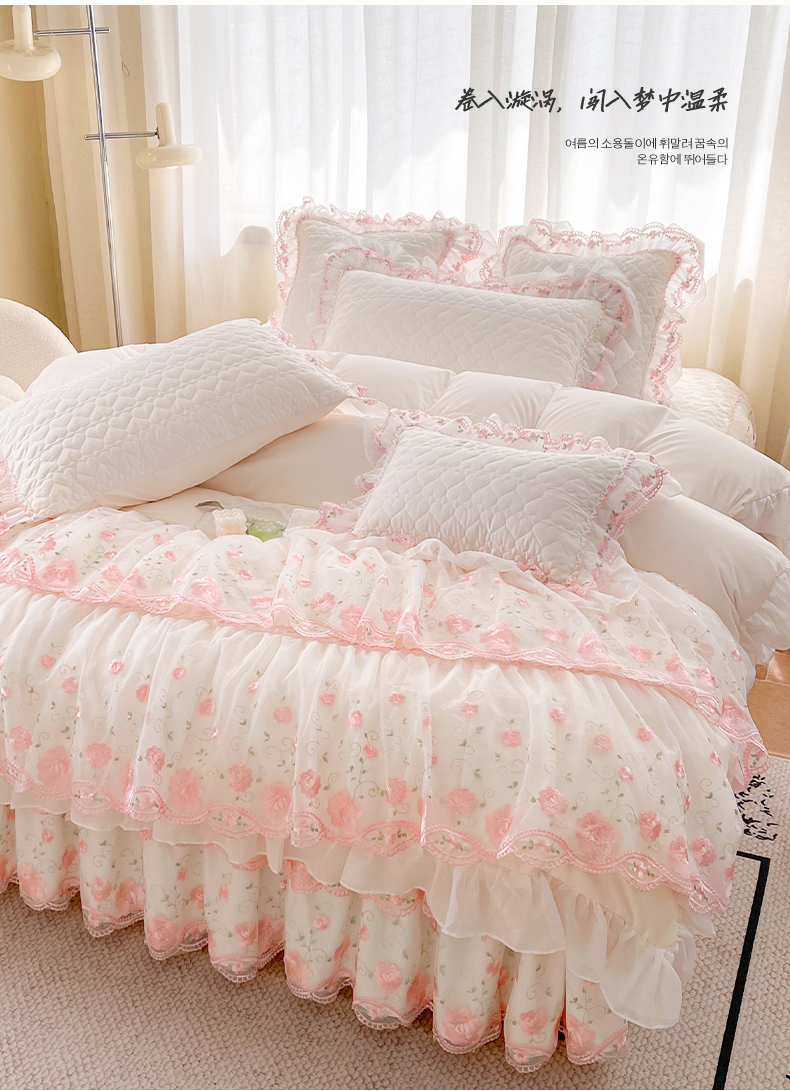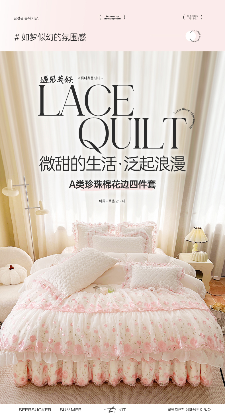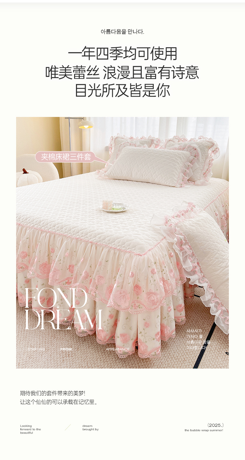 当前位置: 91家纺网 > 商品网购 > 床品套件 > 四件套 > 化纤普通四件套 > 罗艺轩 2025新款A类珍珠棉花边床裙四件套-梦幻花园 梦幻花园-荷花白