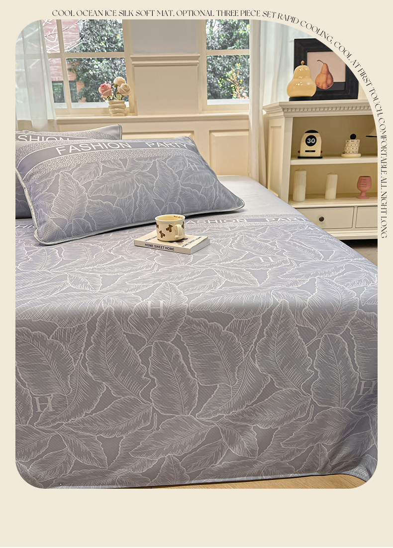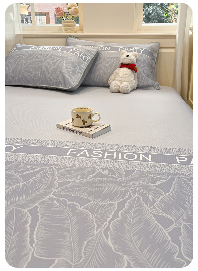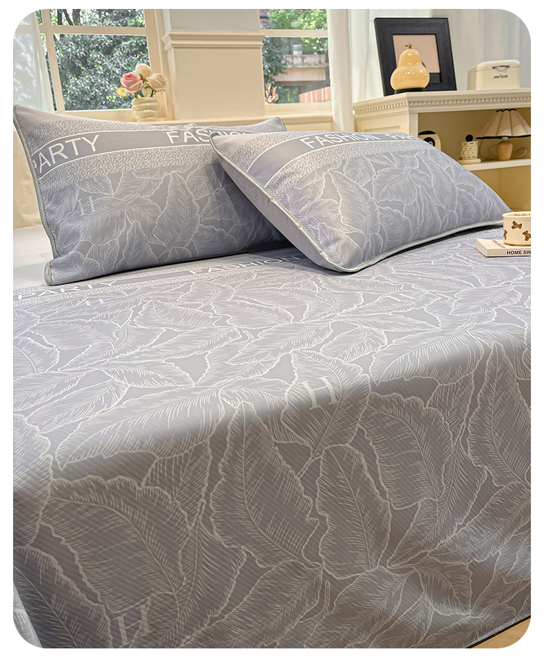 星座家纺 2025新款斜纹提花凉感丝凉席床单款三件套 叶之语-灰