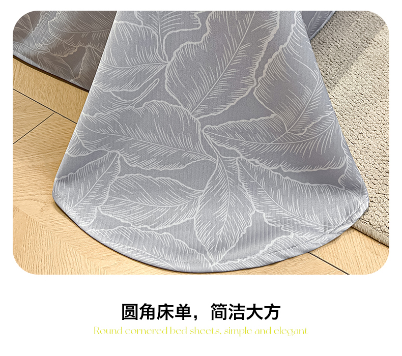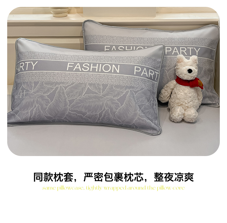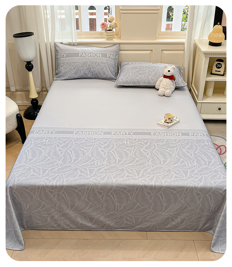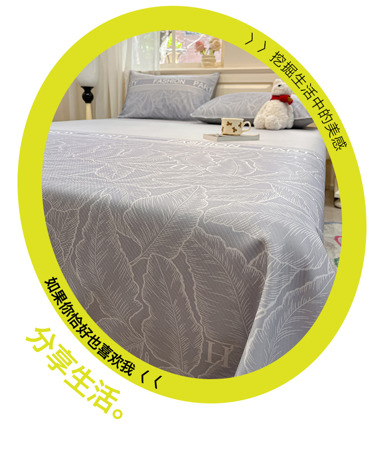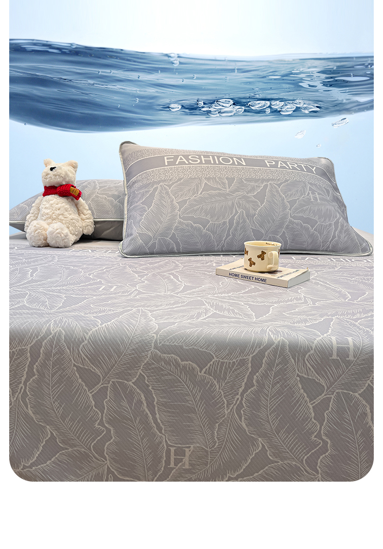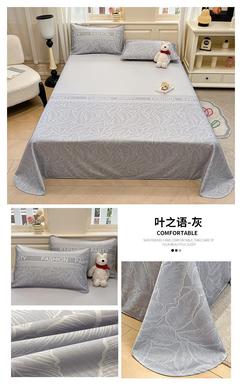 商品名称:星座家纺 2025新款斜纹提花凉感丝凉席床单款三件套 叶之语-灰