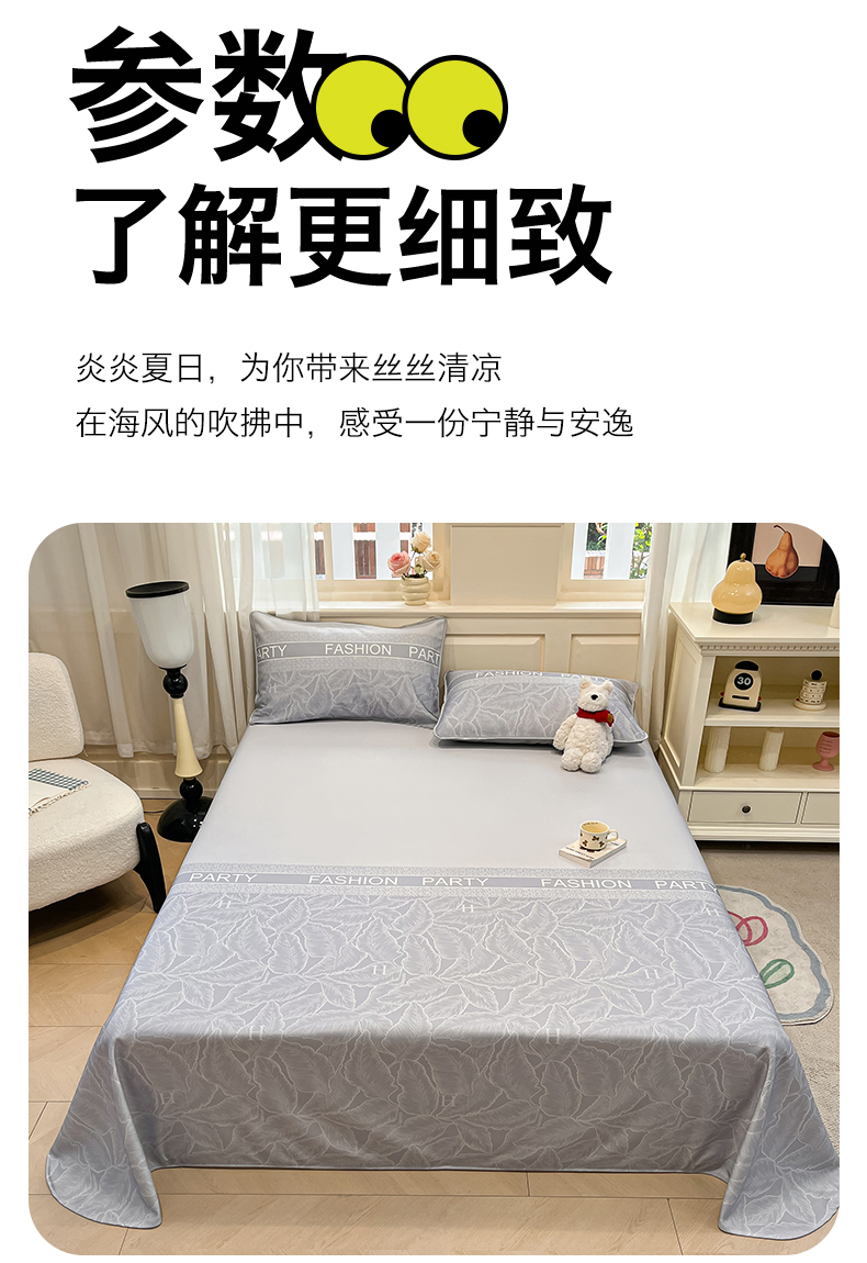 (总)星座家纺 2025新款斜纹提花凉感丝凉席床单款三件套,爱心气泡粉,彩蝶,古韵,萌熊印象,拈花湾蓝,七彩龙,水木年华,午后茶花,小幸运,叶之语-粉,叶之语-灰,叶之语-蓝,叶之语-奶咖,悠悠小元,尤克里里粉,游园会