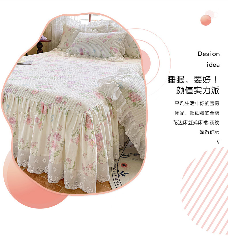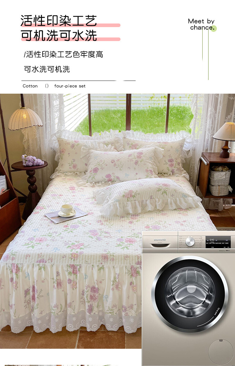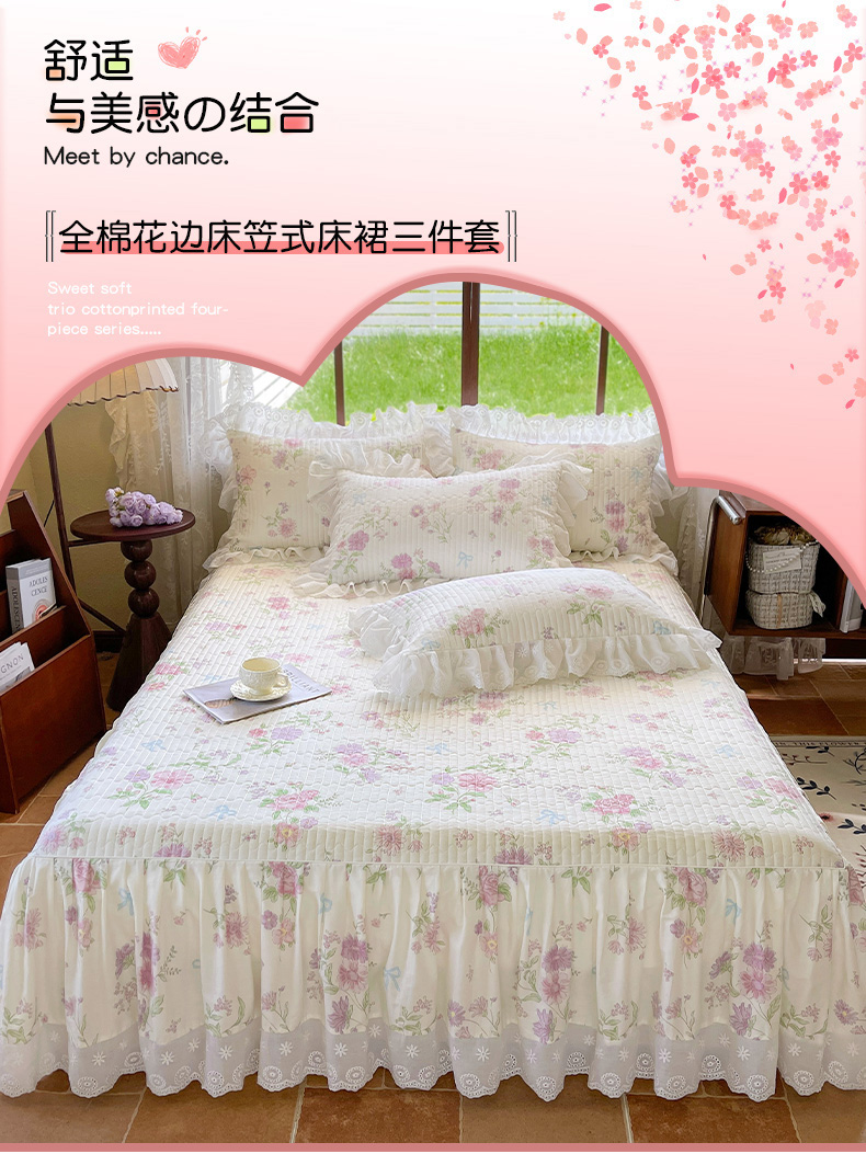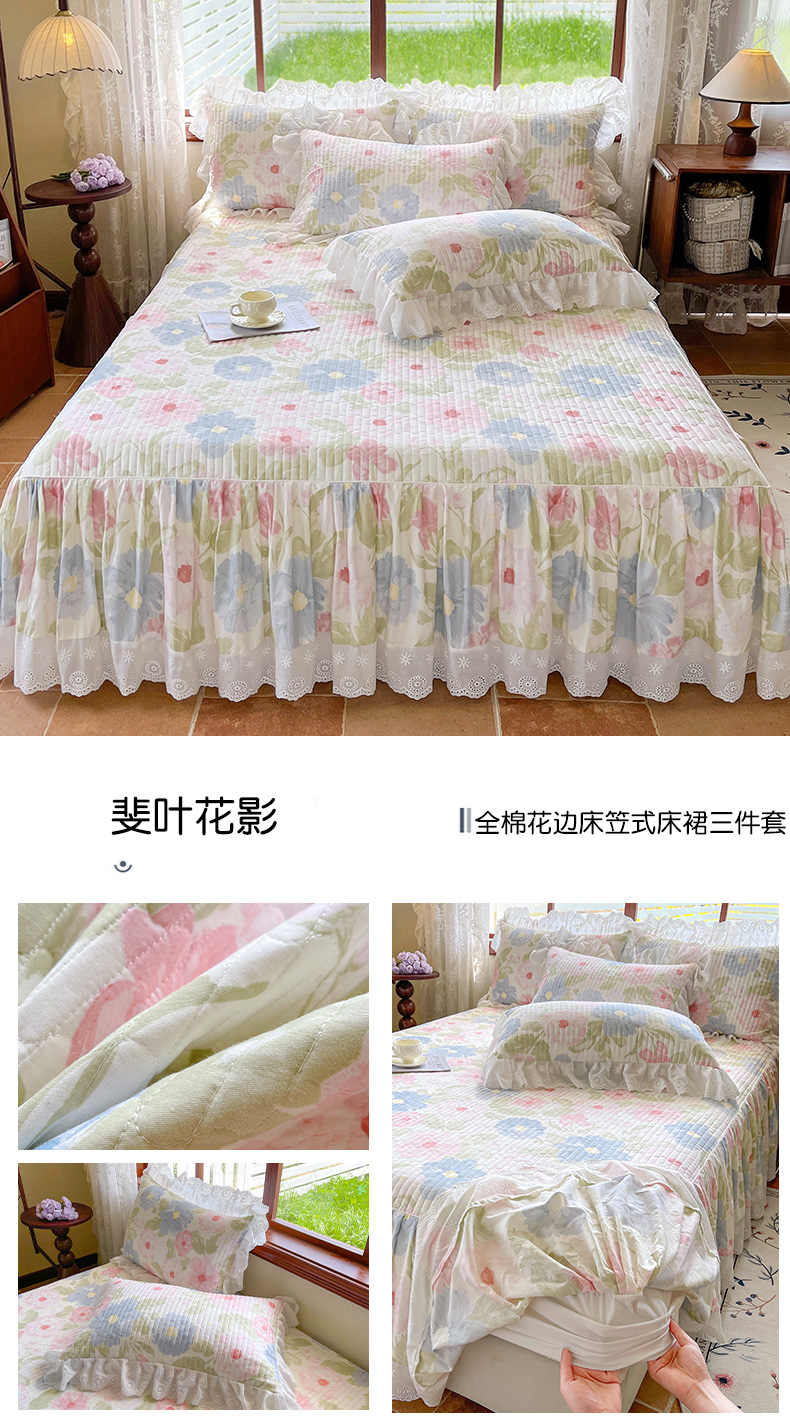当前位置: 91家纺网 > 商品网购 > 床品套件 > 三件套 > 罗艺轩 2025新款全棉印花床笠式床裙三件套 花清雅香