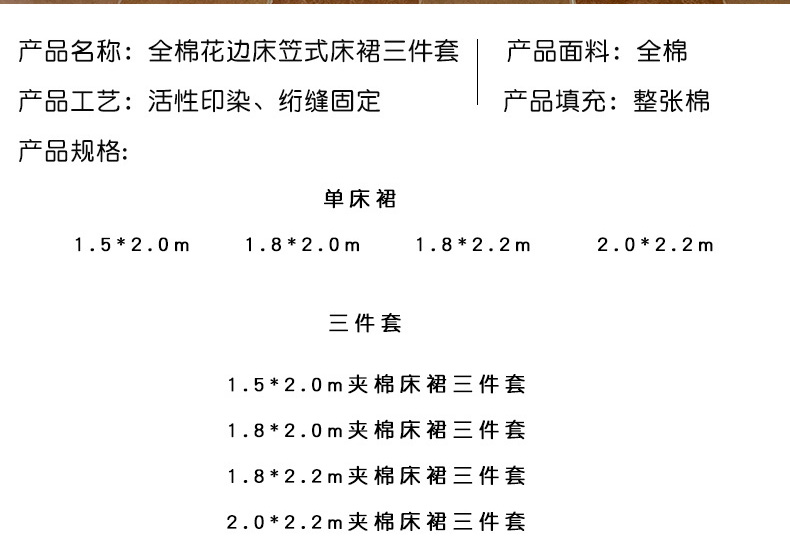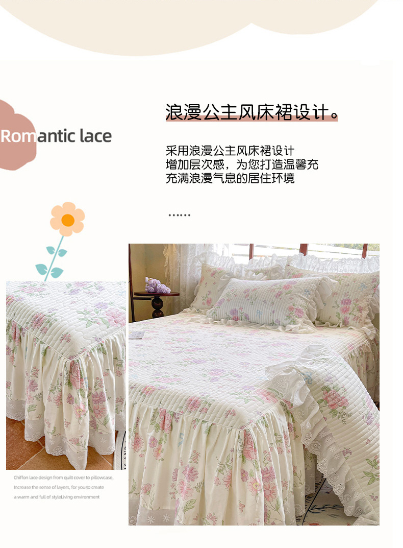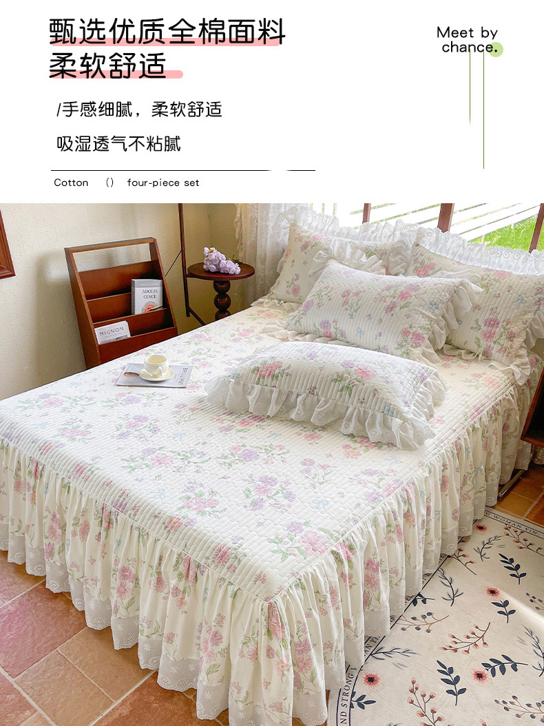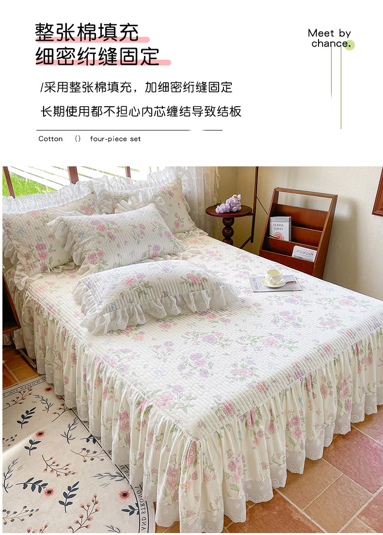 当前位置: 91家纺网 > 商品网购 > 床品套件 > 三件套 > 罗艺轩 2025新款全棉印花床笠式床裙三件套 花清雅香