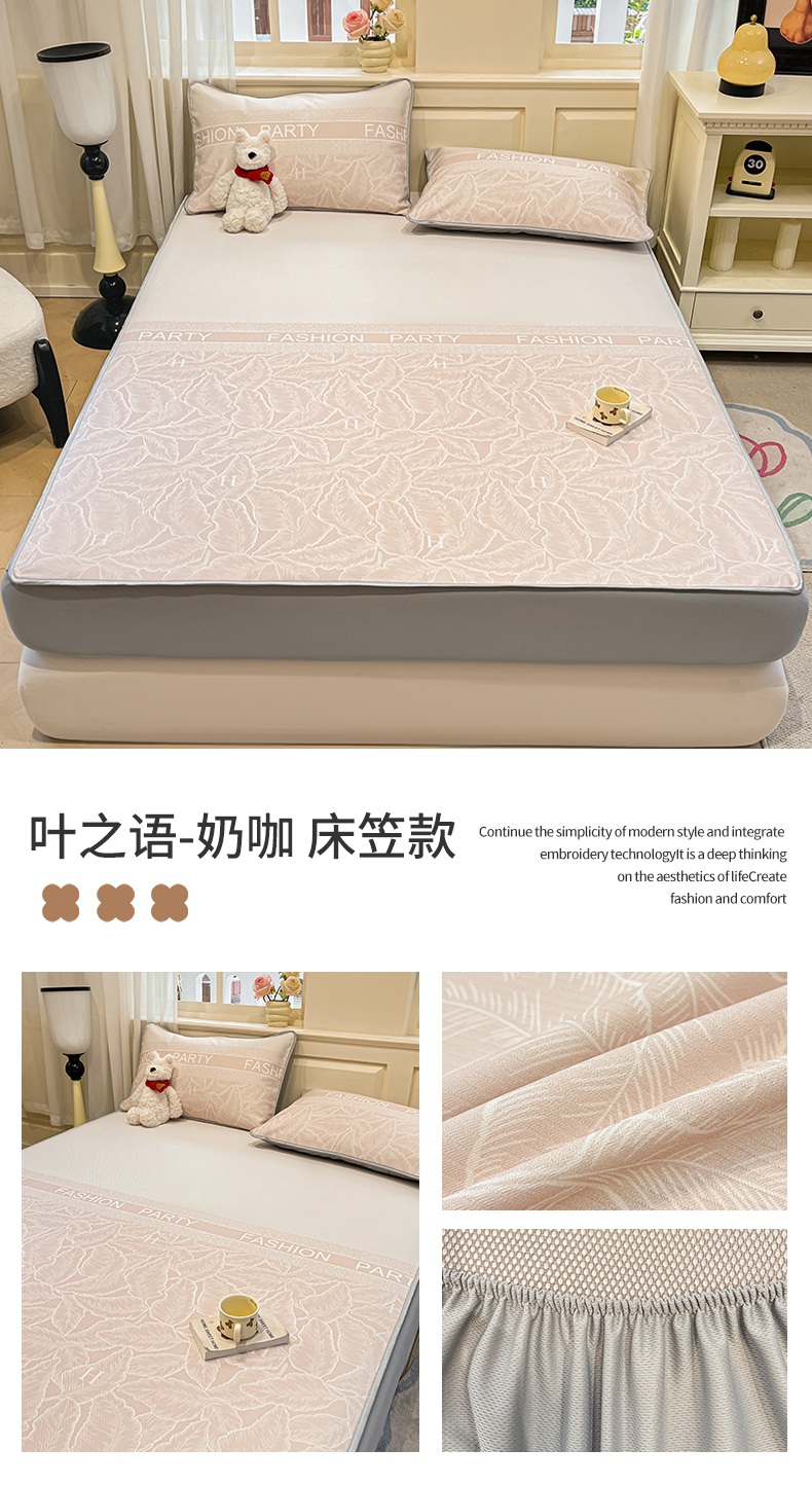 (总)星座家纺 2025新款斜纹提花凉感丝凉席床单款三件套,爱心气泡粉,彩蝶,古韵,萌熊印象,拈花湾蓝,七彩龙,水木年华,午后茶花,小幸运,叶之语-粉,叶之语-灰,叶之语-蓝,叶之语-奶咖,悠悠小元,尤克里里粉,游园会