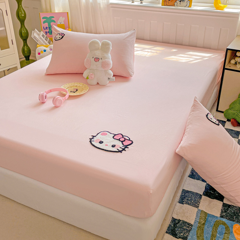港岛妹妹 2025春夏新款卡通毛巾绣床笠 粉红小喵-粉
