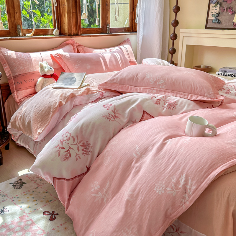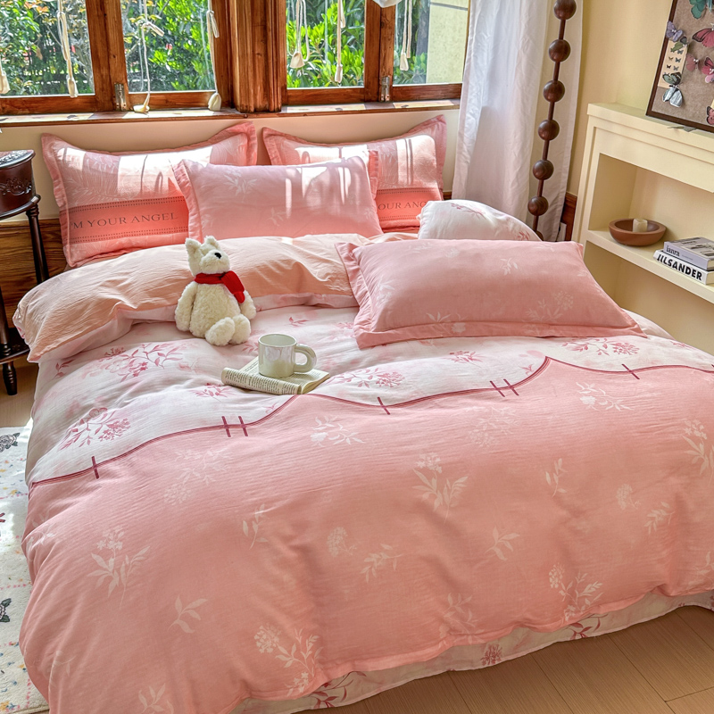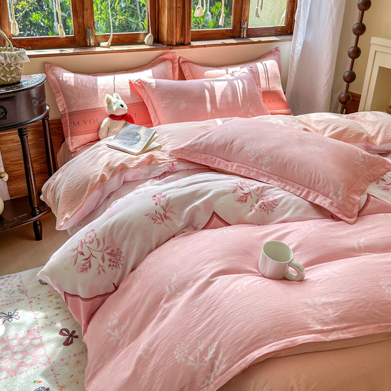 喜四方 2025新款全棉A类母婴级抗菌全棉双层纱四件套 歌禧
