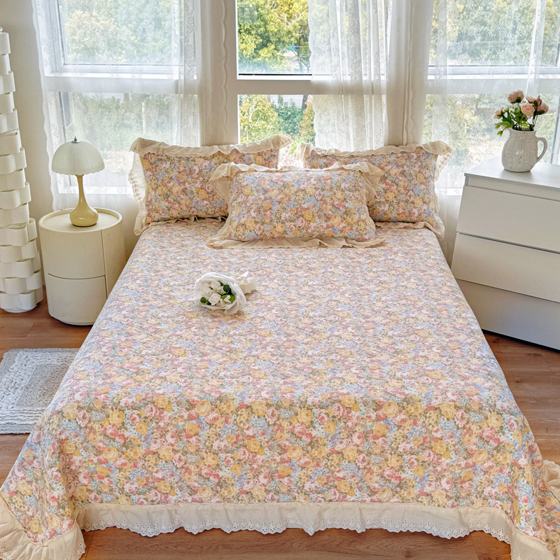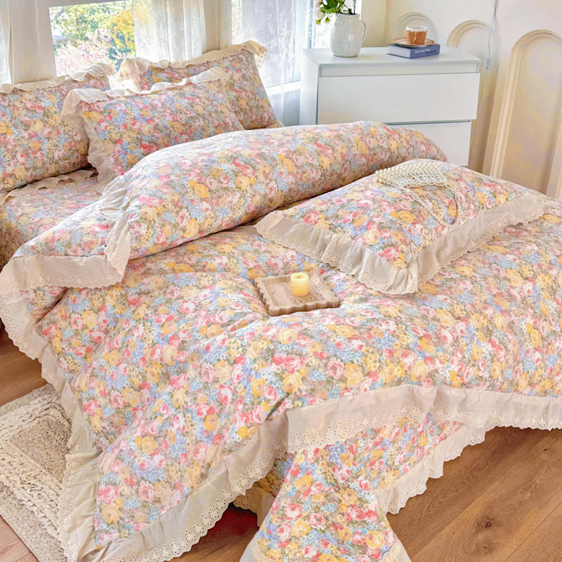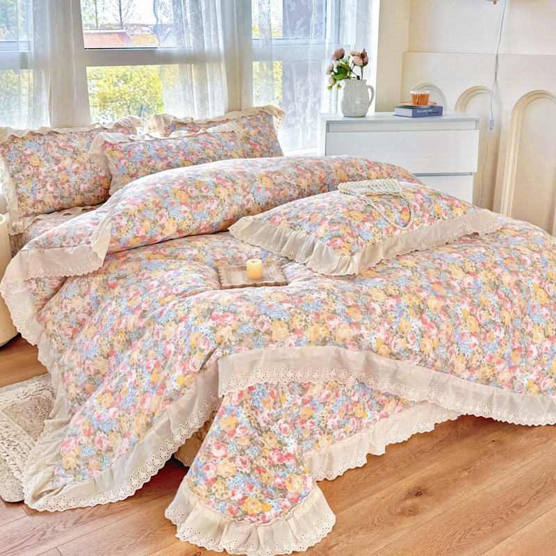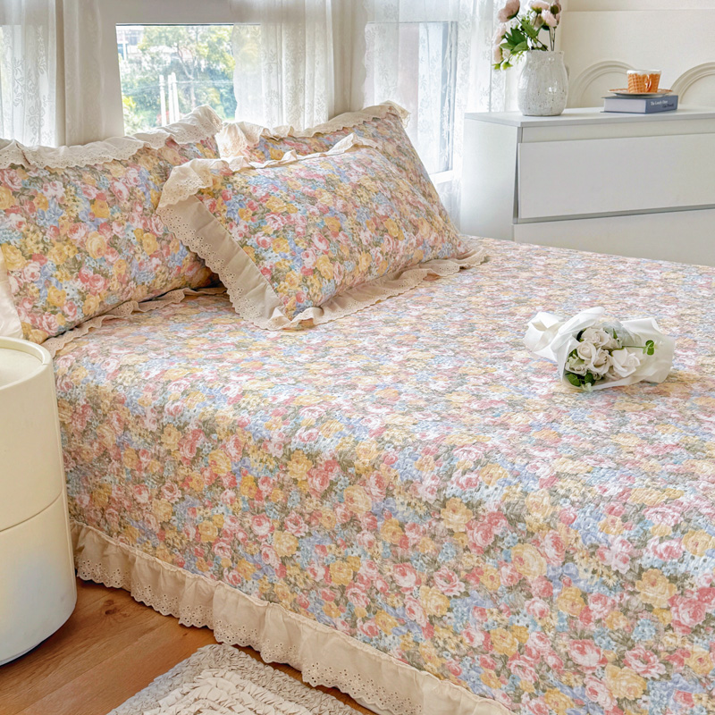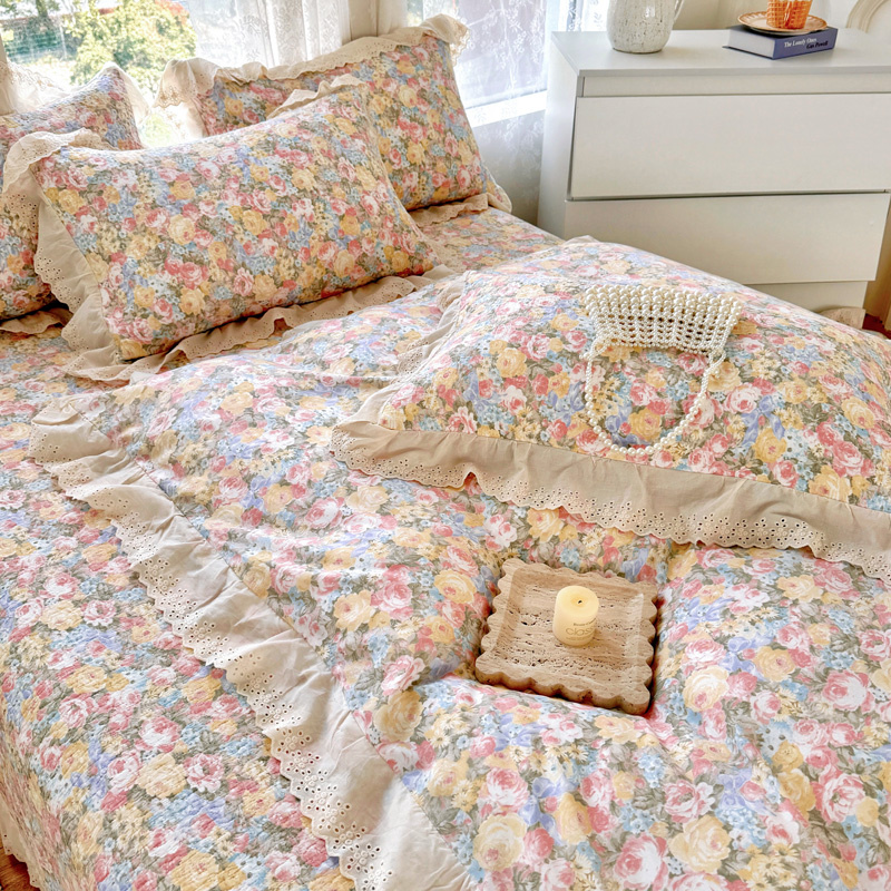 添越 2024小清新韩版蕾丝款花边纯棉夹棉床盖三件套全棉爱意时光蕾丝款,爱意时光蕾丝款