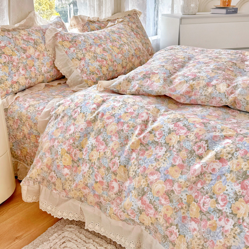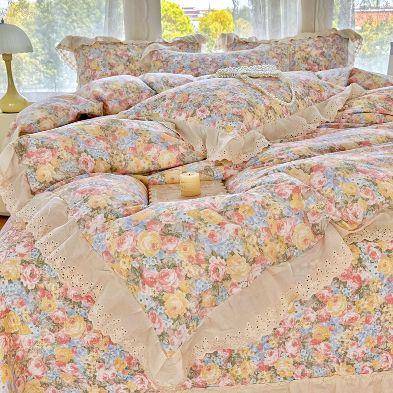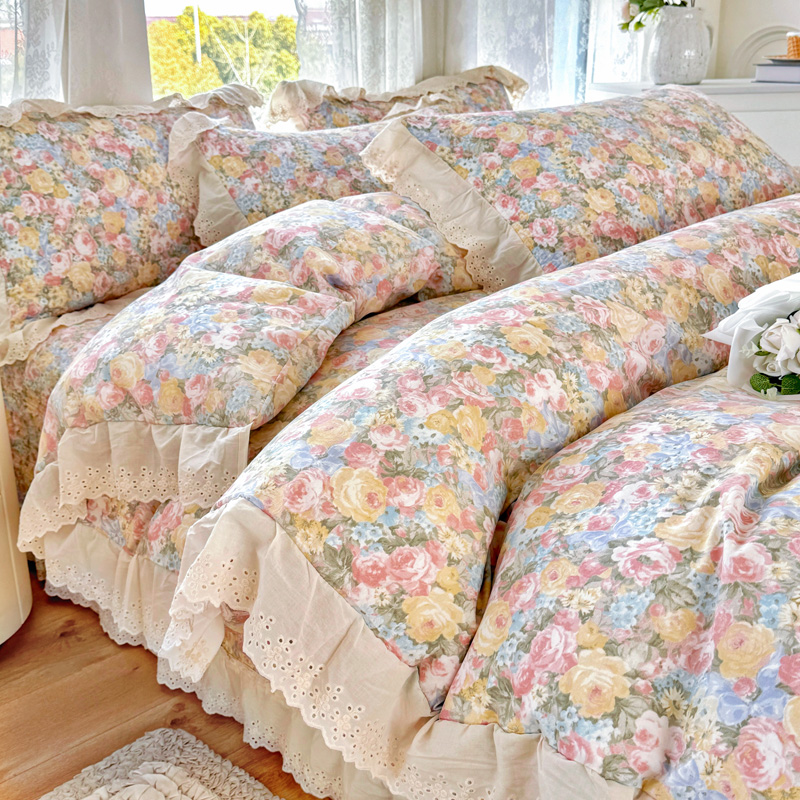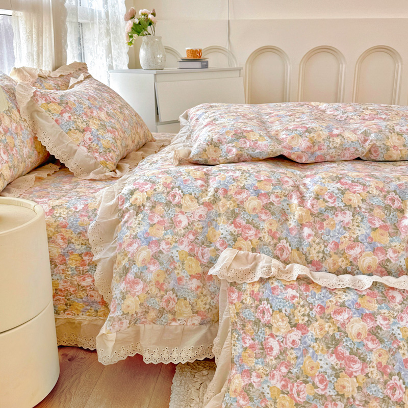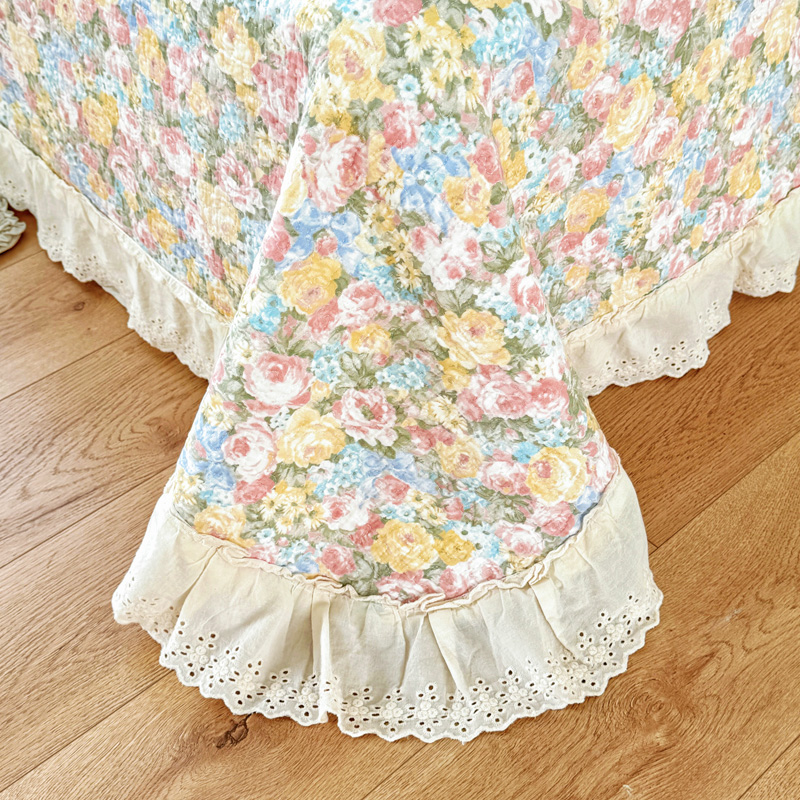 添越 2024小清新韩版蕾丝款花边纯棉夹棉床盖三件套全棉爱意时光蕾丝款,爱意时光蕾丝款