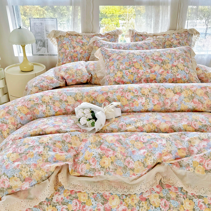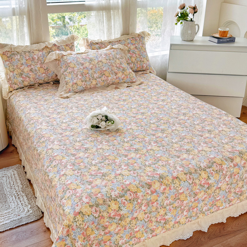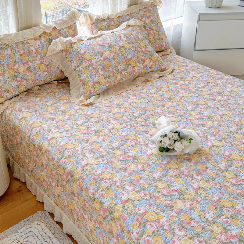 (总)添越 2024花边纯棉夹棉床盖三件套全棉,玫瑰花园粉,安娜花园,初恋,波点白,华美夺艳,黄波点,心动,梦境,多彩爱心,心心相印,太阳花米白,元气桃桃