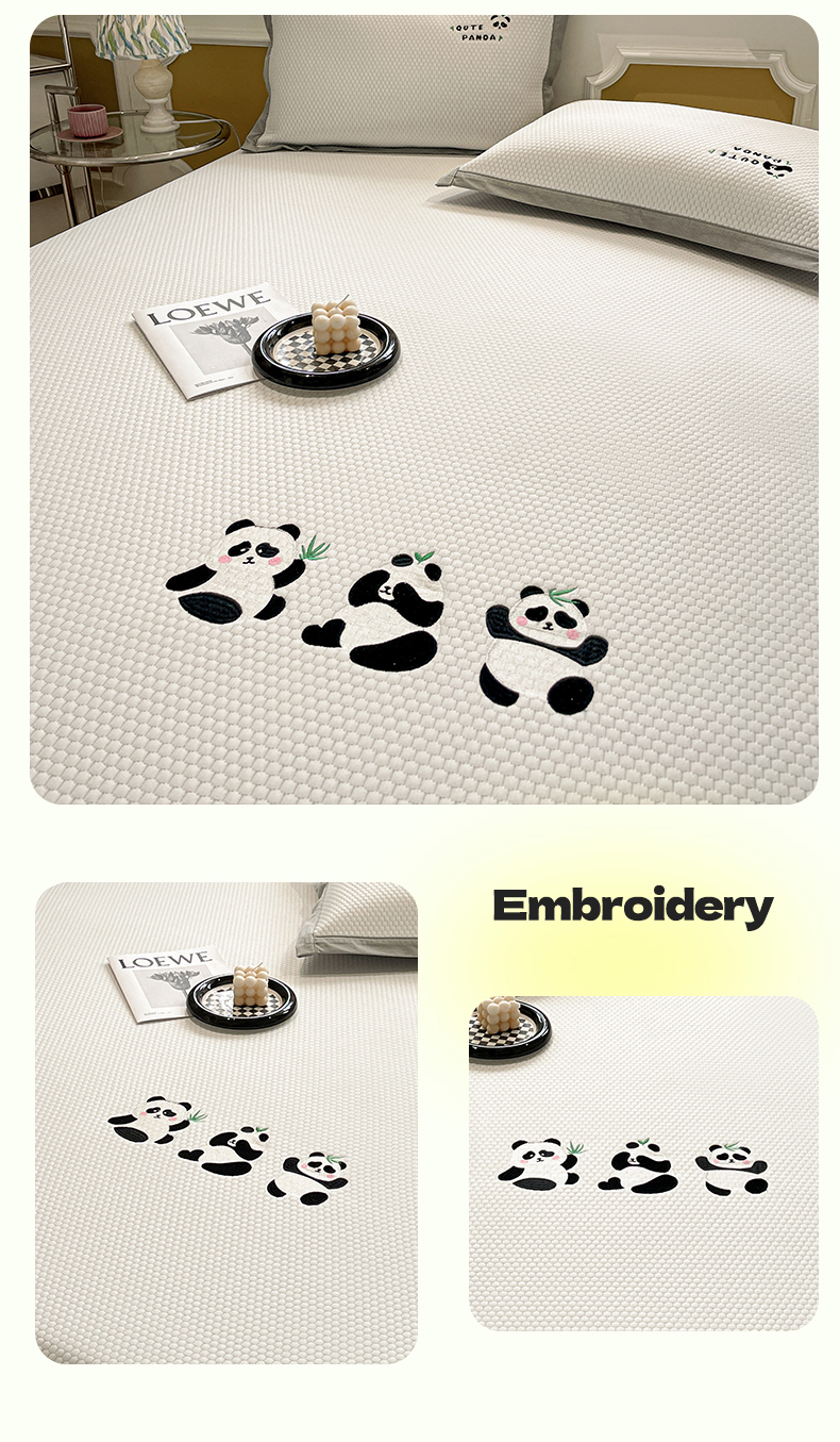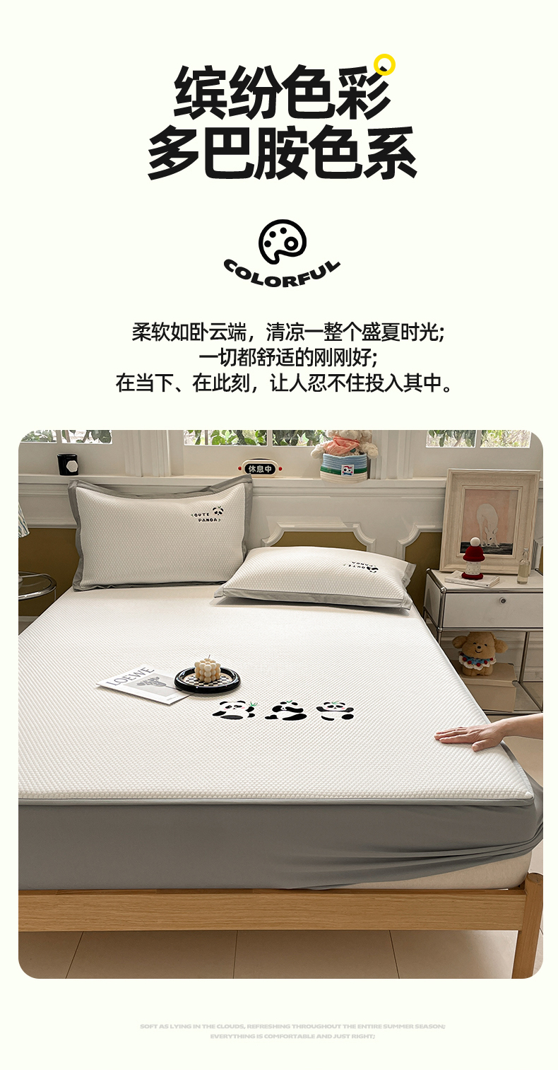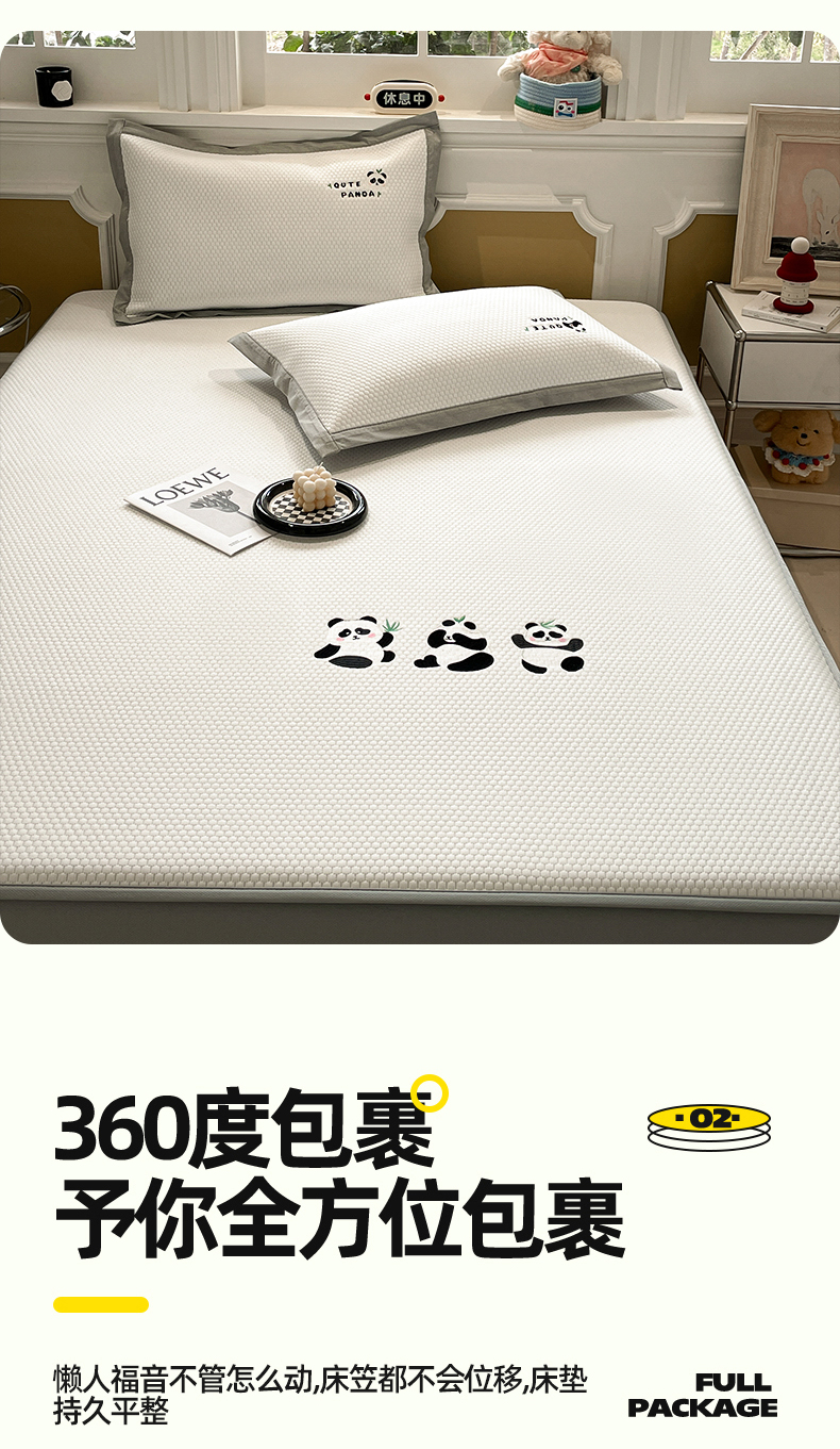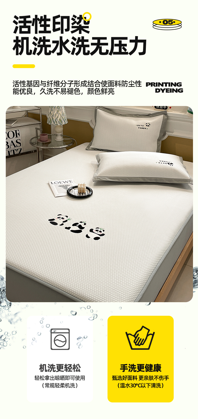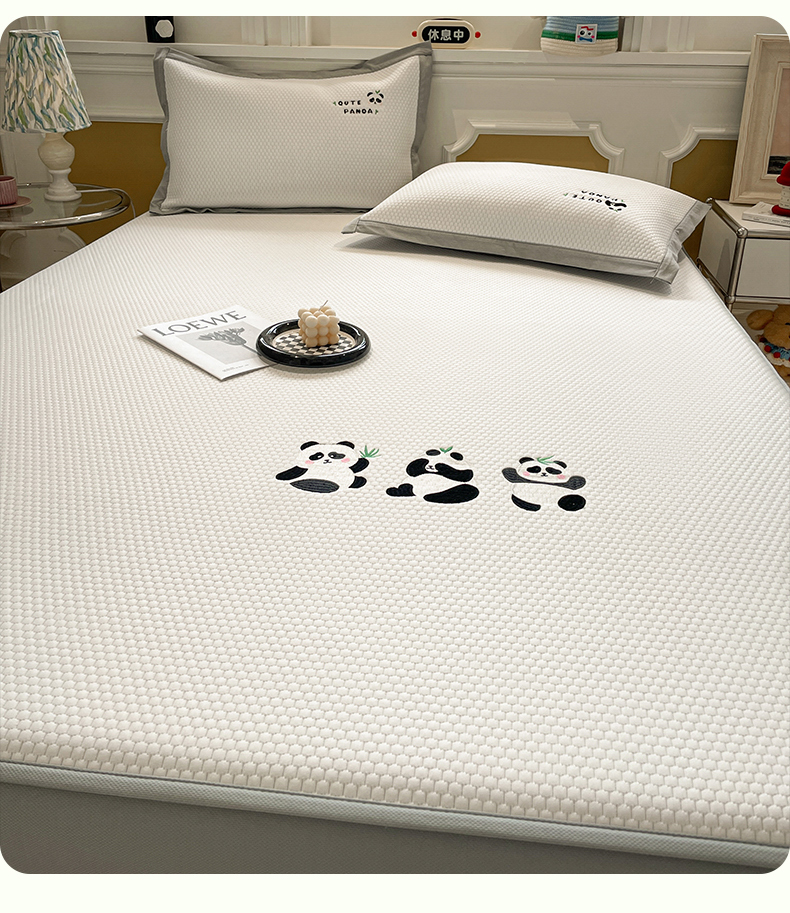 启程家纺 2025新款凉豆豆复合三明治刺绣款凉席席子-床笠款 熊猫-白-床笠款