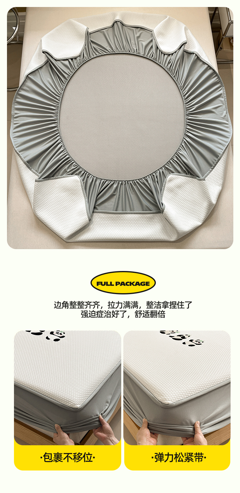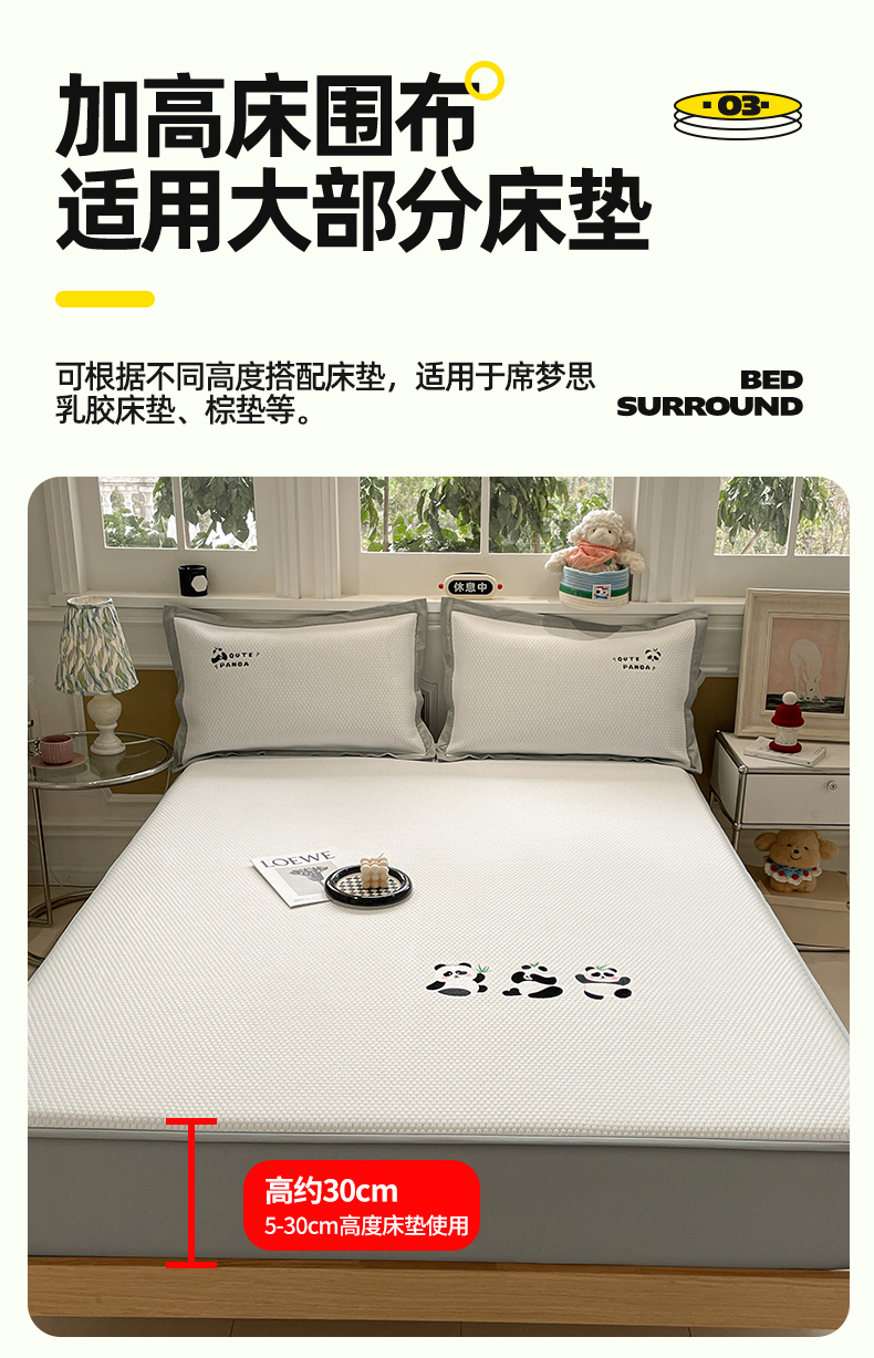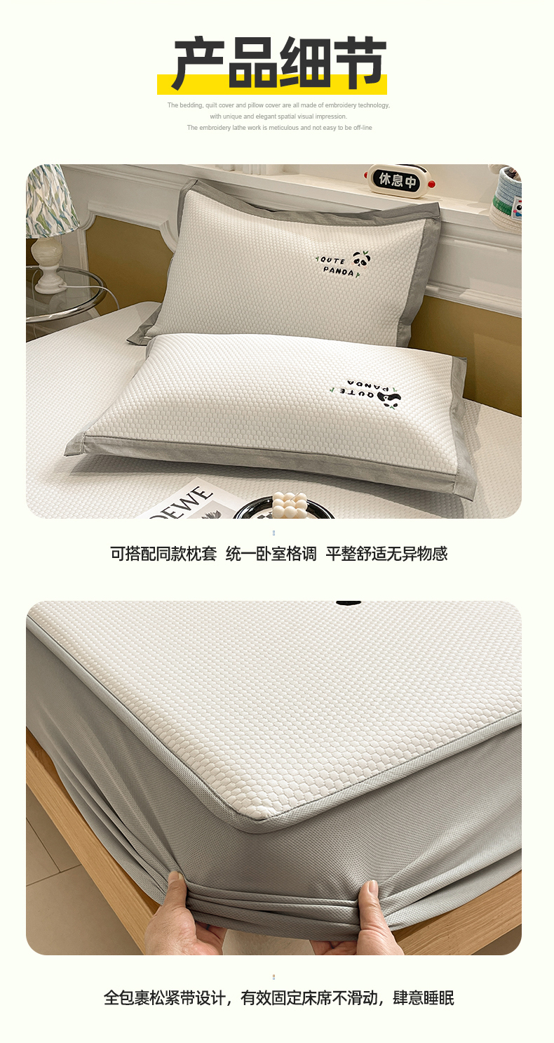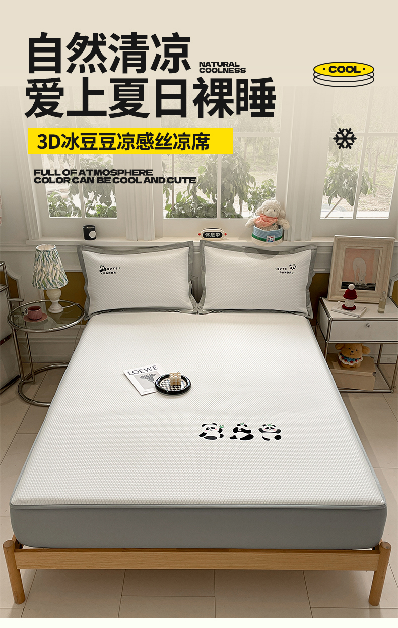 启程家纺 2025新款凉豆豆复合三明治刺绣款凉席席子-床笠款 熊猫-白-床笠款
