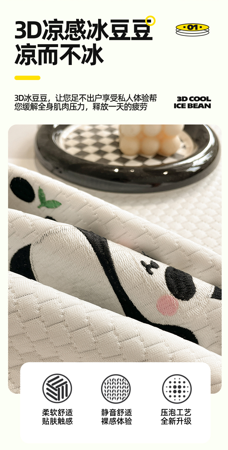商品名称:启程家纺 2025新款凉豆豆复合三明治刺绣款凉席席子-床笠款 熊猫-白-床笠款
