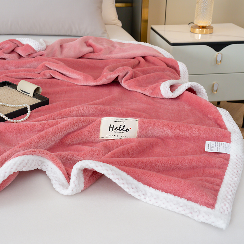 商品名称:好多家纺 2025新款亲肤纯色包边盖毯毯子 粉红