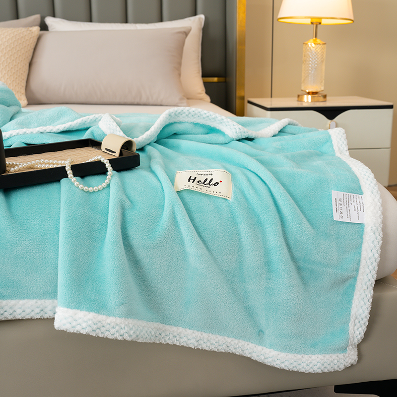 好多家纺 2025新款亲肤纯色包边盖毯毯子 浅绿,浅绿