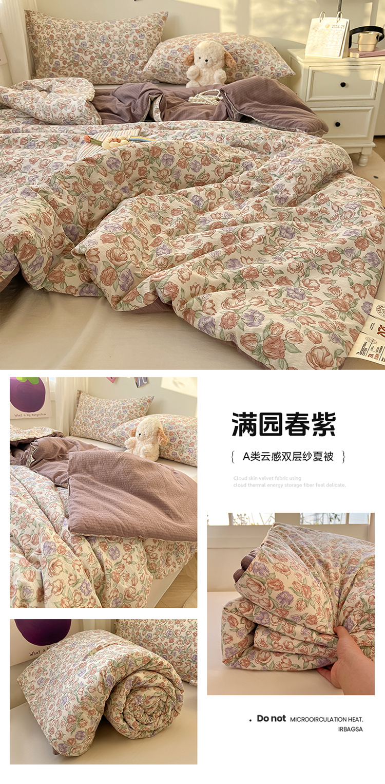 韩巢家纺 2025新款高克重印花牛奶绒床品四件套 田园小花,田园小花