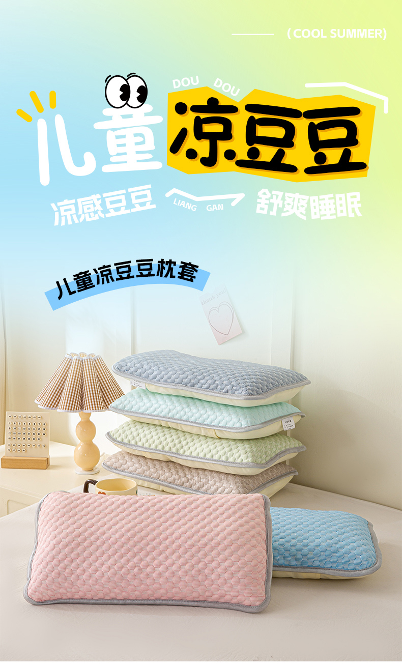商品名称:博雅 2025春夏新款儿童凉感豆豆枕套 枕套单件 凉豆豆绿