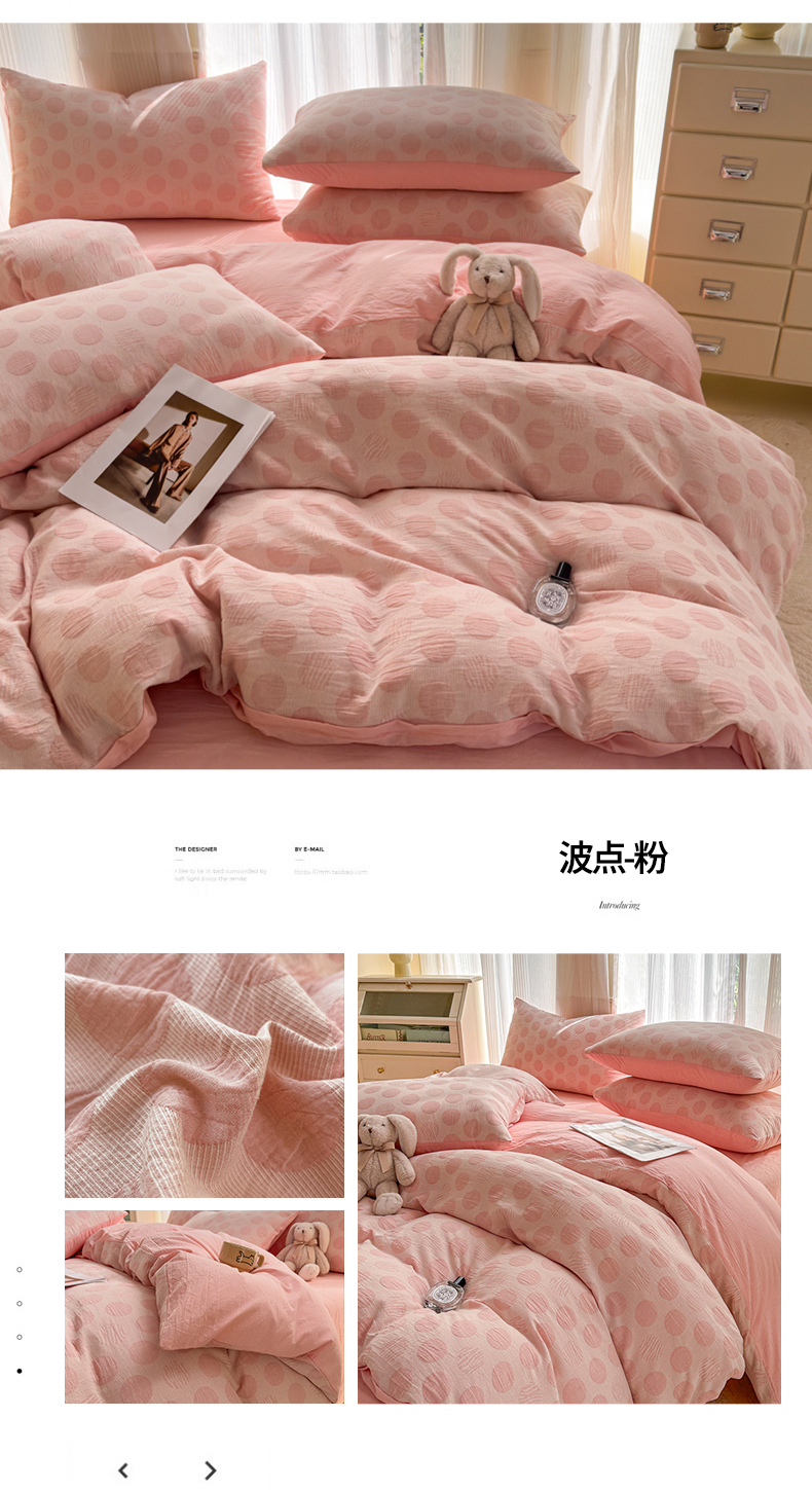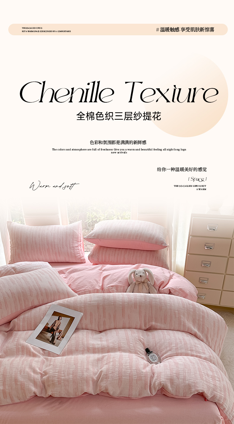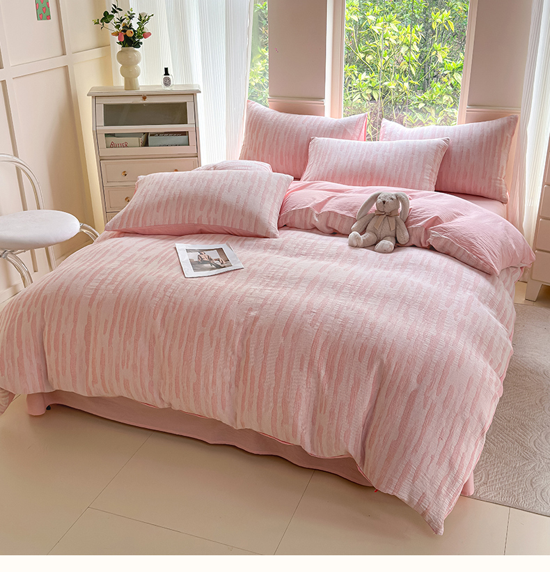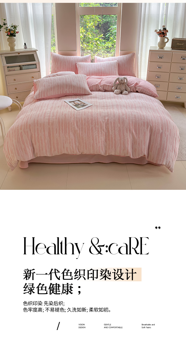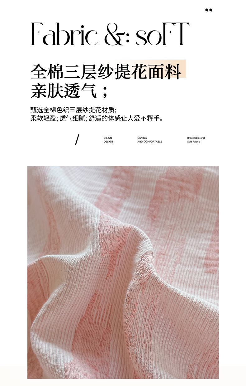 当前位置: 91家纺网 > 商品网购 > 床品套件 > 四件套 > 色织四件套 > 菡宝 2025新款a类母婴级纯棉全棉纯棉色织三层纱提花系列四件套 艾瑞-粉