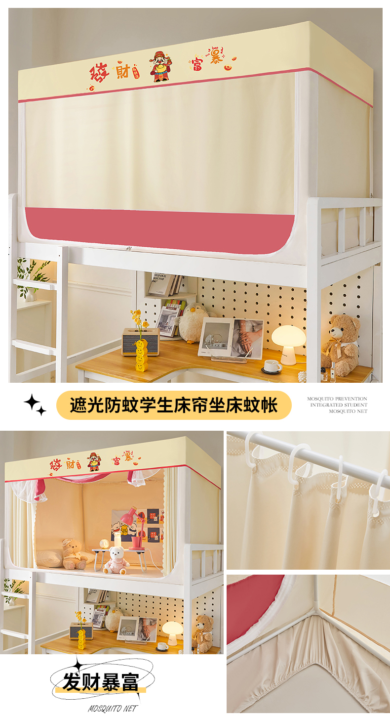 (总)薇梦蚊帐 2025新款学生宿舍遮光蚊帐,元气狗熊,乐享人生,发财暴富,快乐熊宝,暴富发财,快乐生活,公主请发财