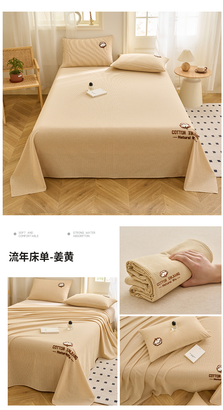 早晨家纺 2025新款色织纯棉水洗棉毛巾绣床单 流年床单-姜黄