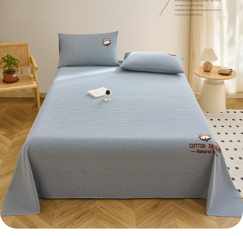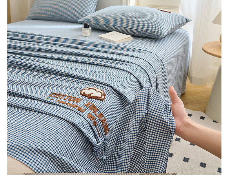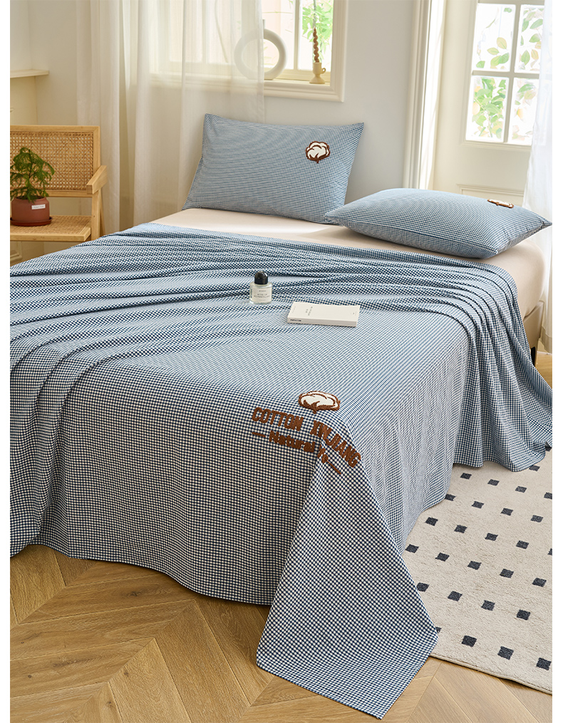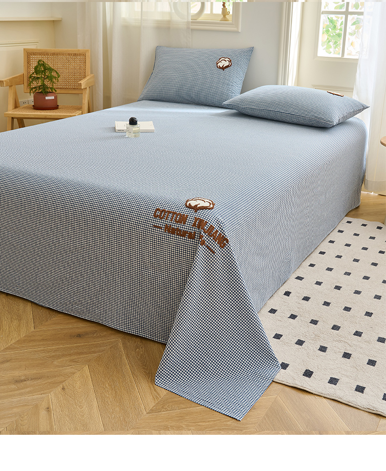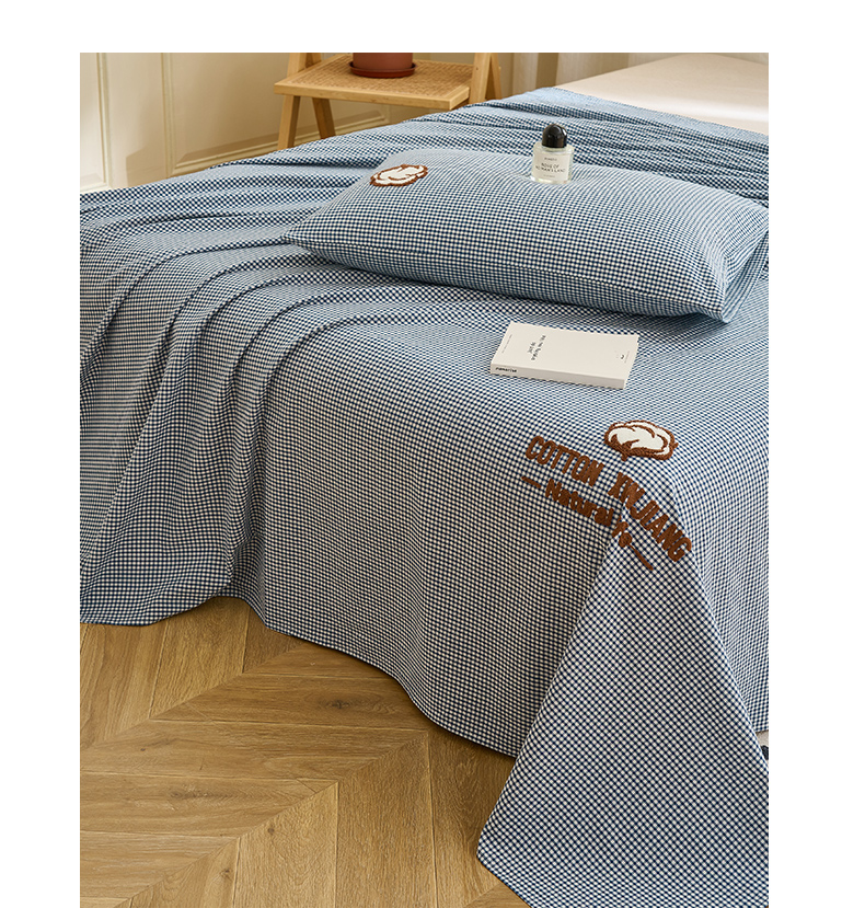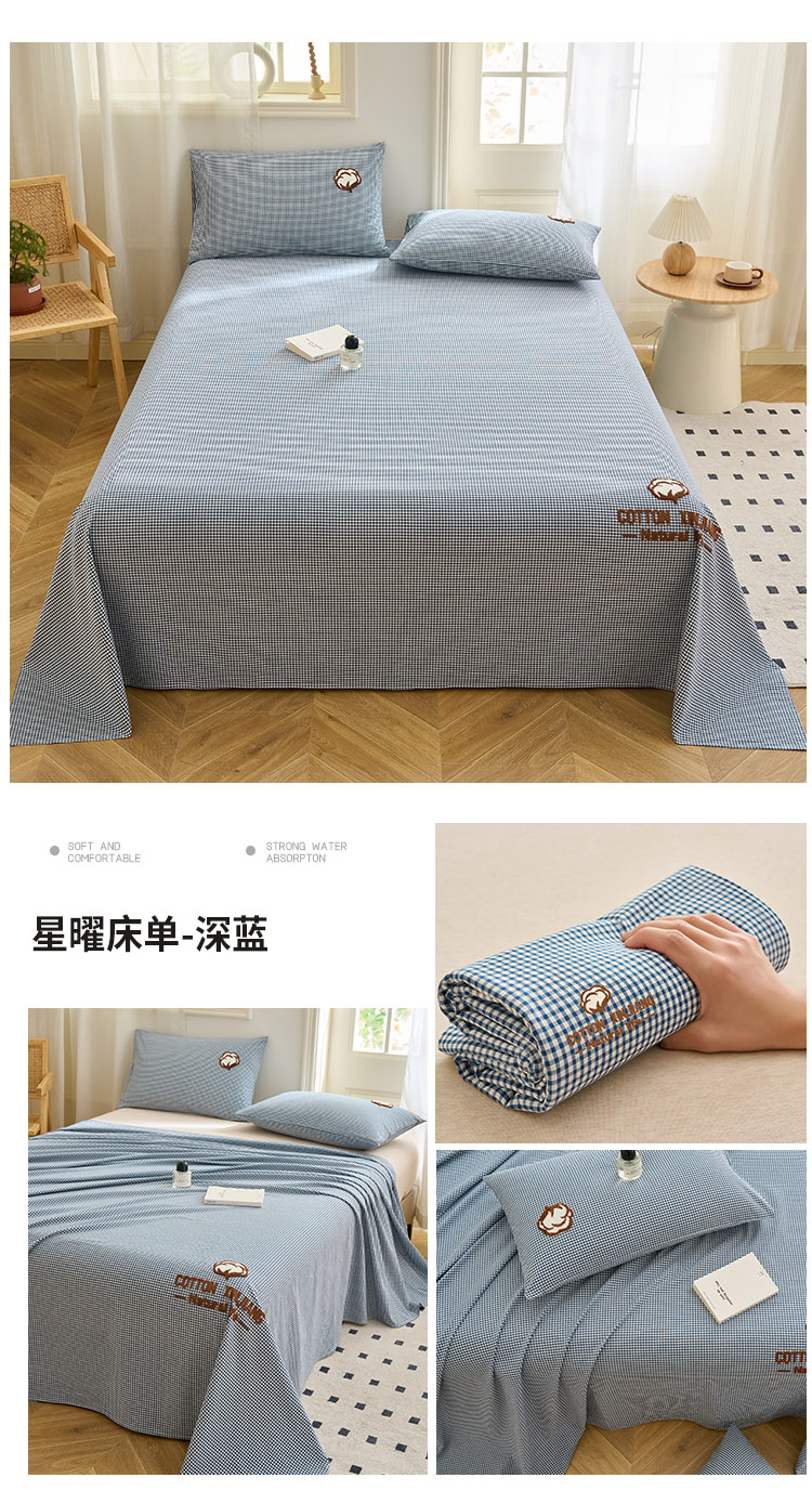 早晨家纺 2025新款色织纯棉水洗棉毛巾绣床单 星曜床单-深蓝