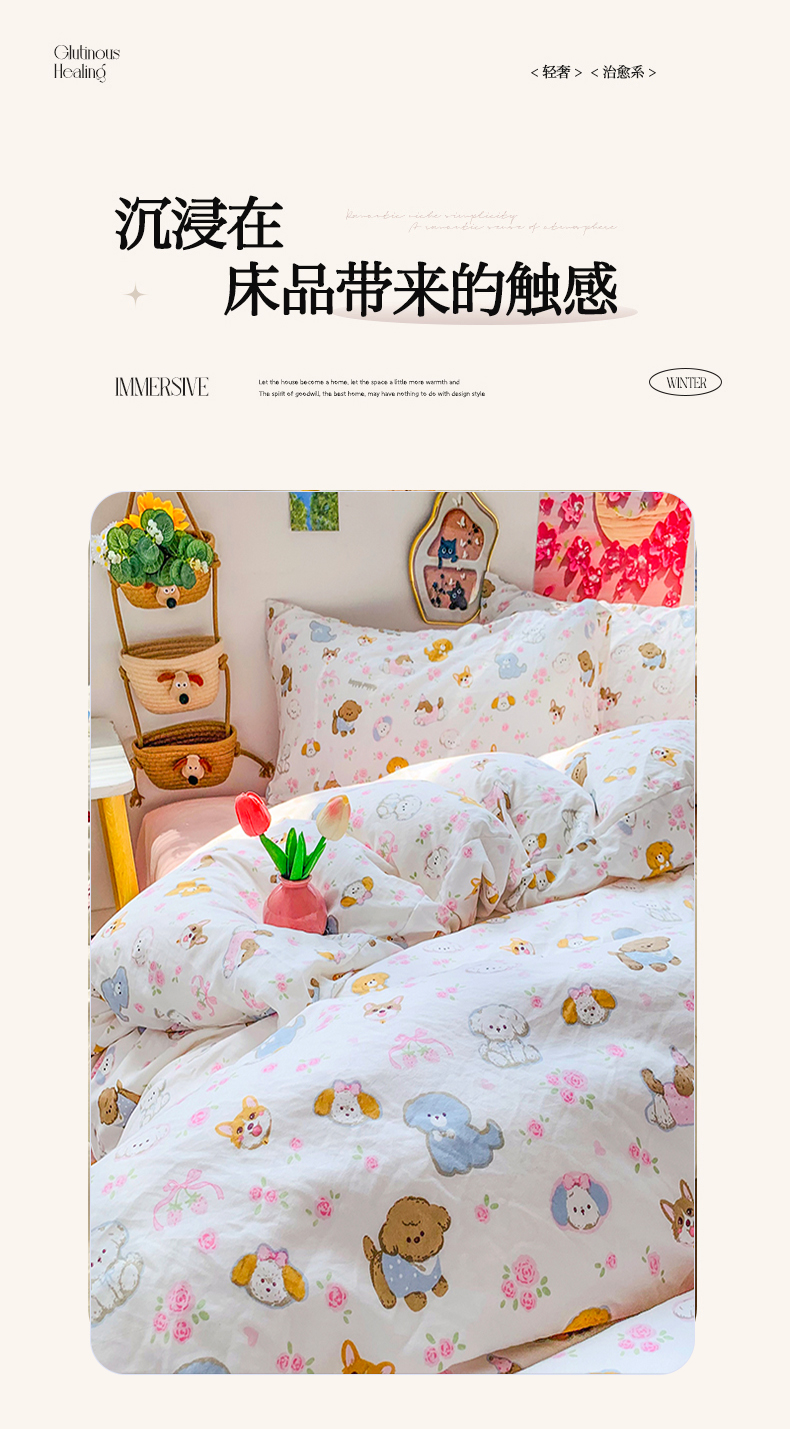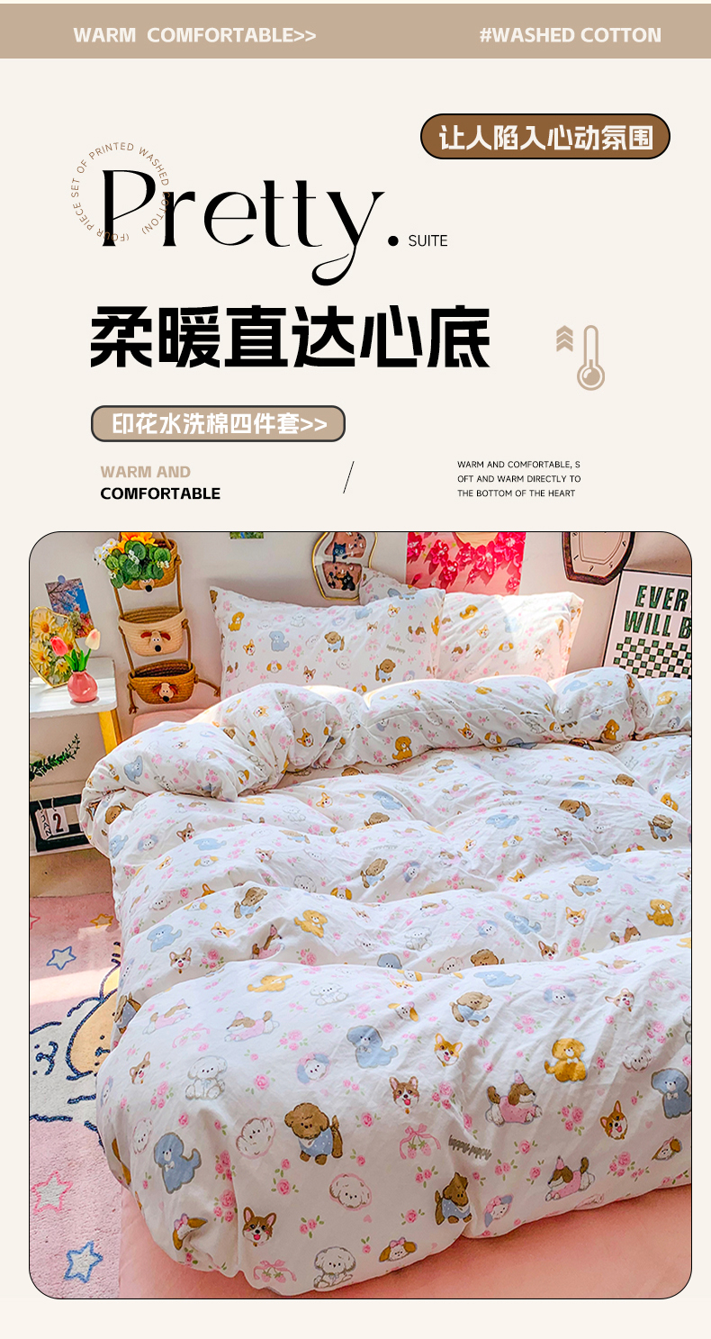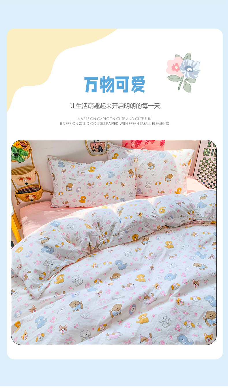 当前位置: 91家纺网 > 商品网购 > 床品套件 > 四件套 > 水洗棉四件套 > 艾特你 2025新款印花水洗棉四件套 萌狗乐园